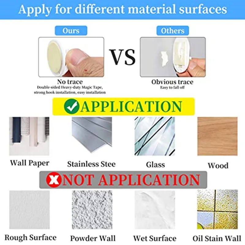 Легко наклеивается, сильная адгезия, может быть легко удалена после нагрева с помощью фена, не повредит стену. Широко используется на различных поверхностях, таких как дерево, плитка, керамика, металл, пластиковая поверхность и многое другое.