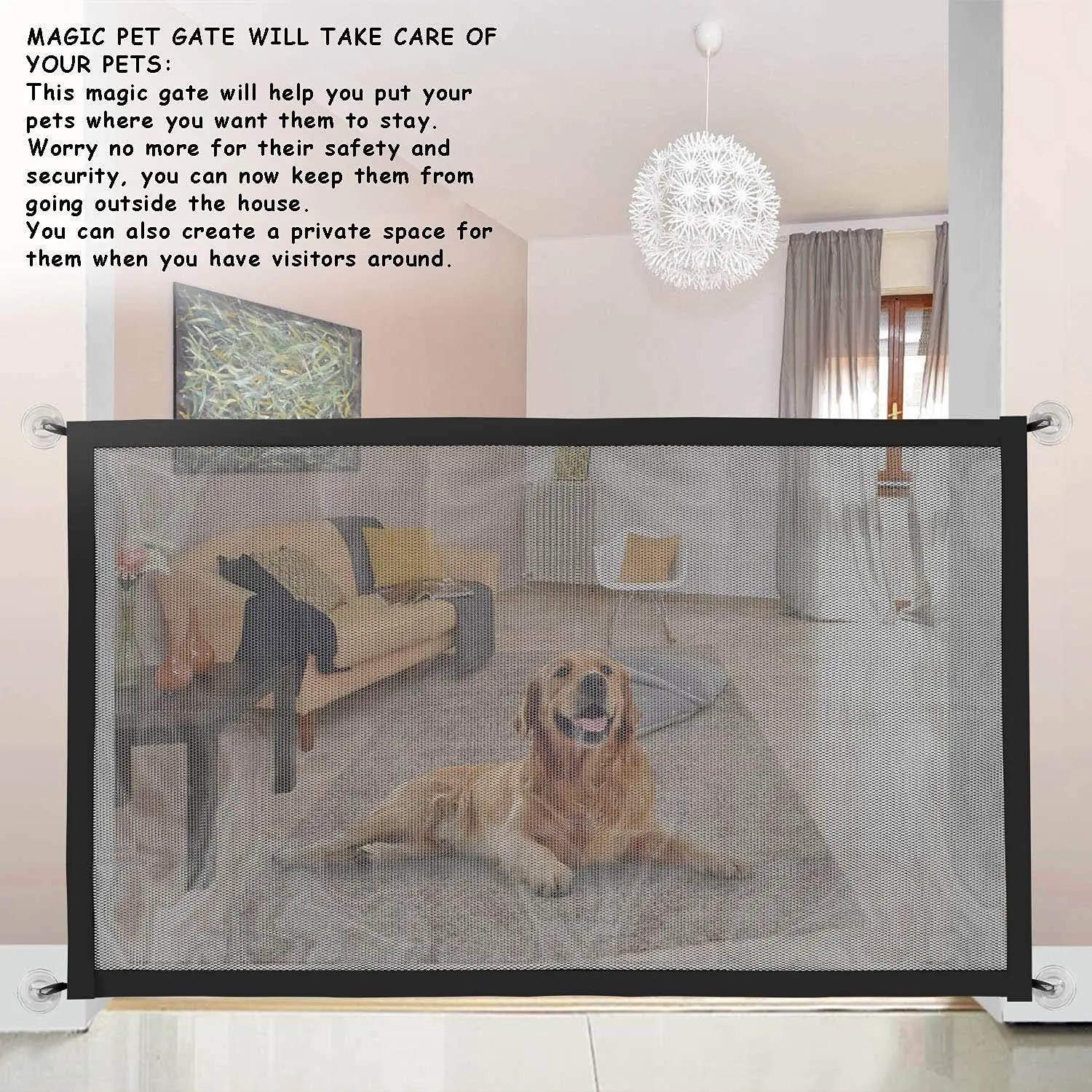 Волшебные ворота собаки могут установить их между стенами, дверными проемами, лестницами, в помещении и на открытом воздухе. Только нужно приклеить крючок с обеих сторон двери (подходящее положение), полностью собранный для немедленного использования. Никаких инструментов не требуется.