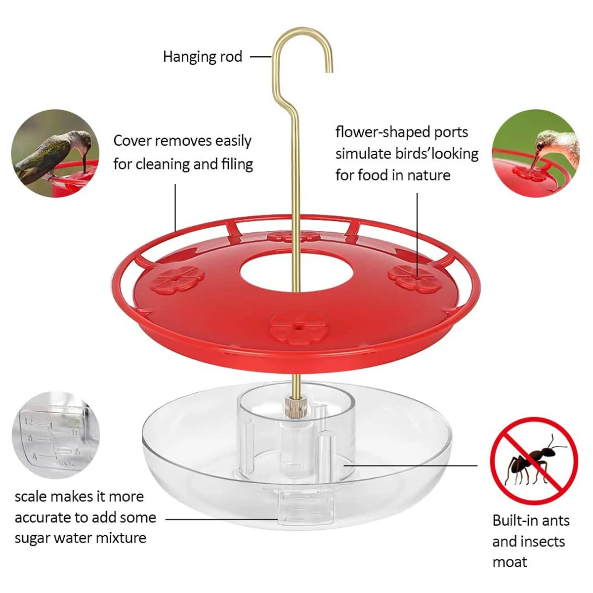 С муравьим влагой: гумминг питатель для наружного применения построен-в муравей в центре кормушки для защиты от муравьев.