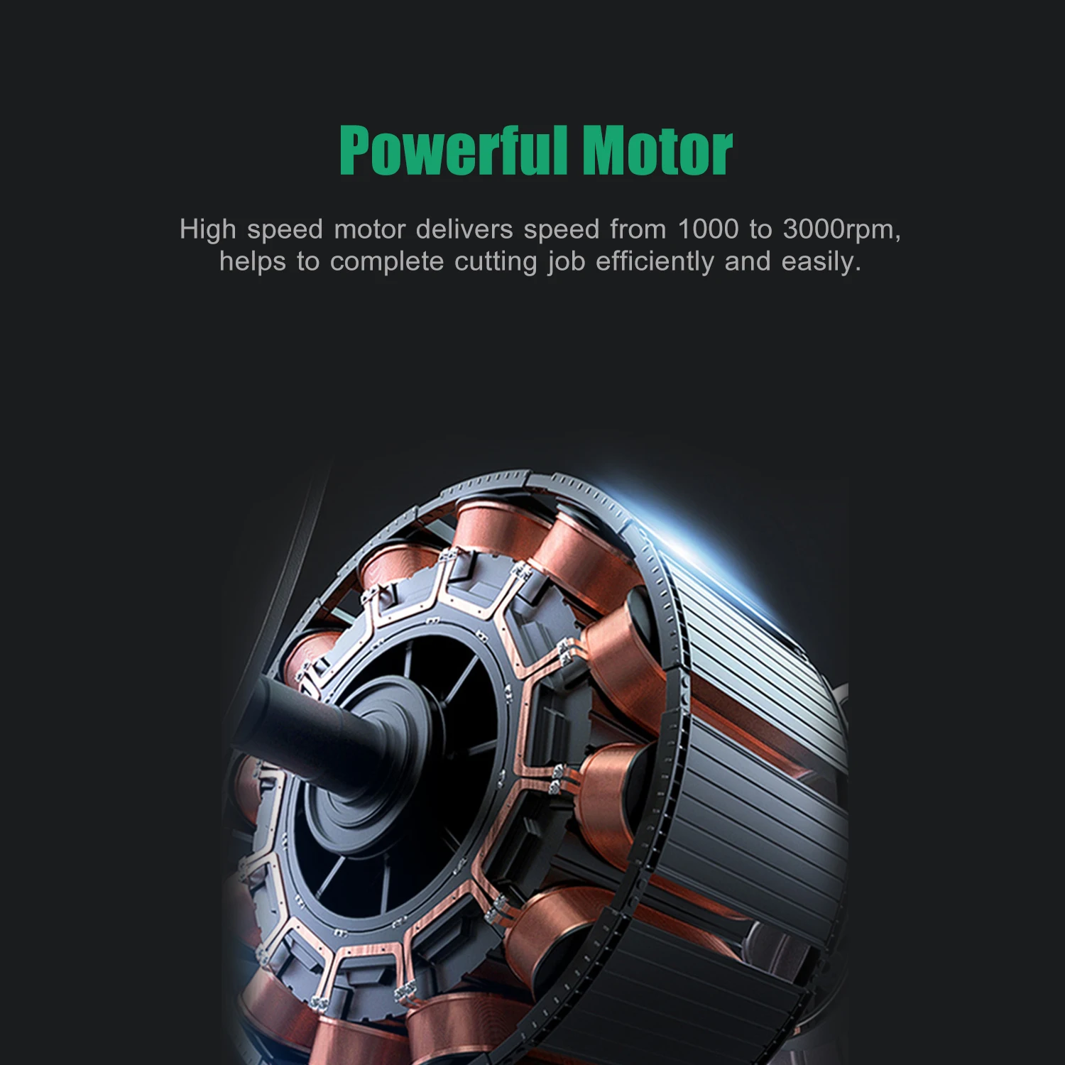 Мощный мотор-- Высокоскоростной двигатель обеспечивает скорость от 1000 до 3000 об/мин, поддерживает глубину резки до 35 мм, помогает выполнить резку эффективно и легко.