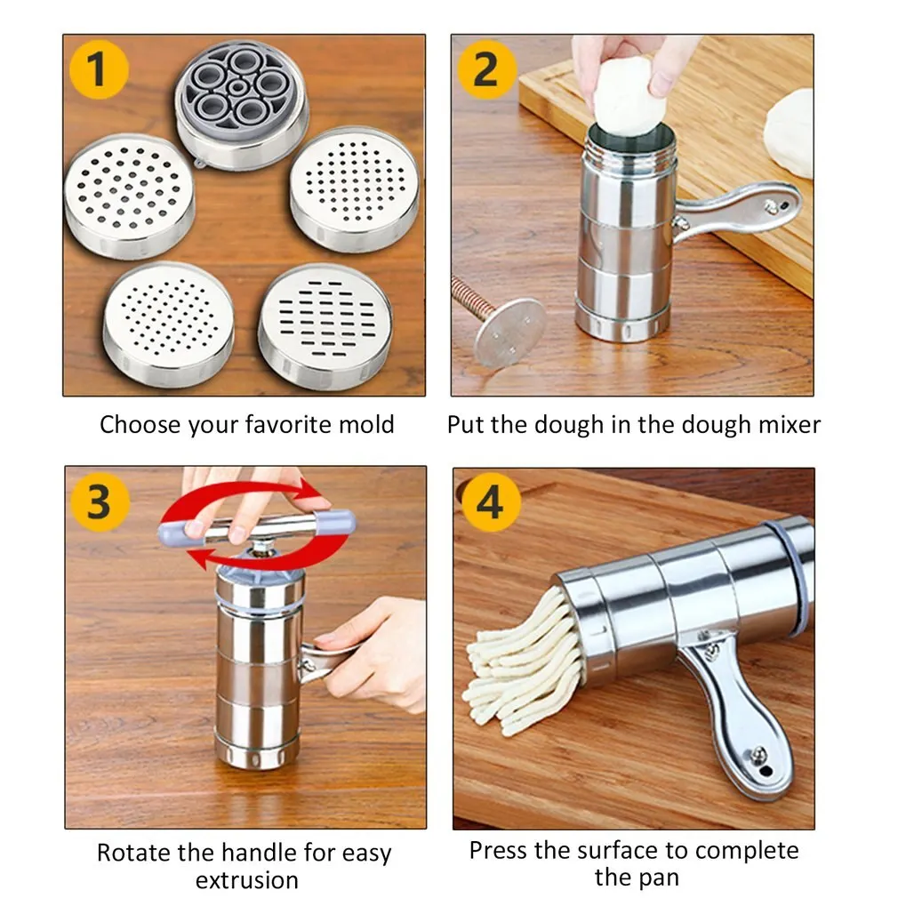 Newcreativetop из нержавеющей стали ручной пресс для лапши машина для приготовления макаронных изделий с 5 форм для лапши