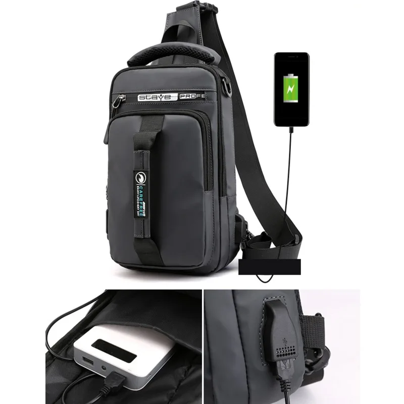 Мужская водонепроницаемая сумка через плечо USB Oxford с защитой от кражи, многофункциональная короткая сумка-мессенджер для путешествий, нагрудная сумка для мужчин