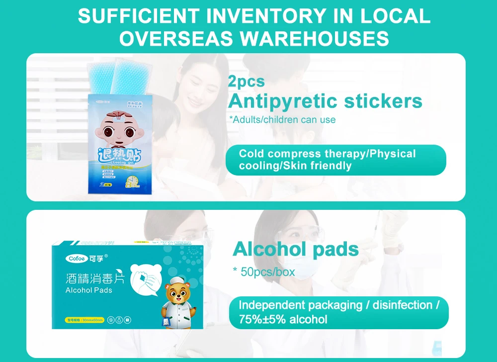 50pcs Alcohol cotton + 2pcs Antipyretic stickers Combination