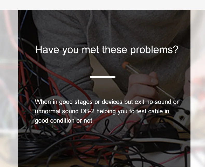 DB-2 может испытать соединительные линии заключаются в следующем: 3-контактный XLR соединения, 6,35 мм инструментальный кабель RCA Подключение, 2-ядерный и 4-х ядерный акустические кабели, Hi-Fi вилка типа банан, 3-контактный и 5-контактный разъем соединения для передачи данных