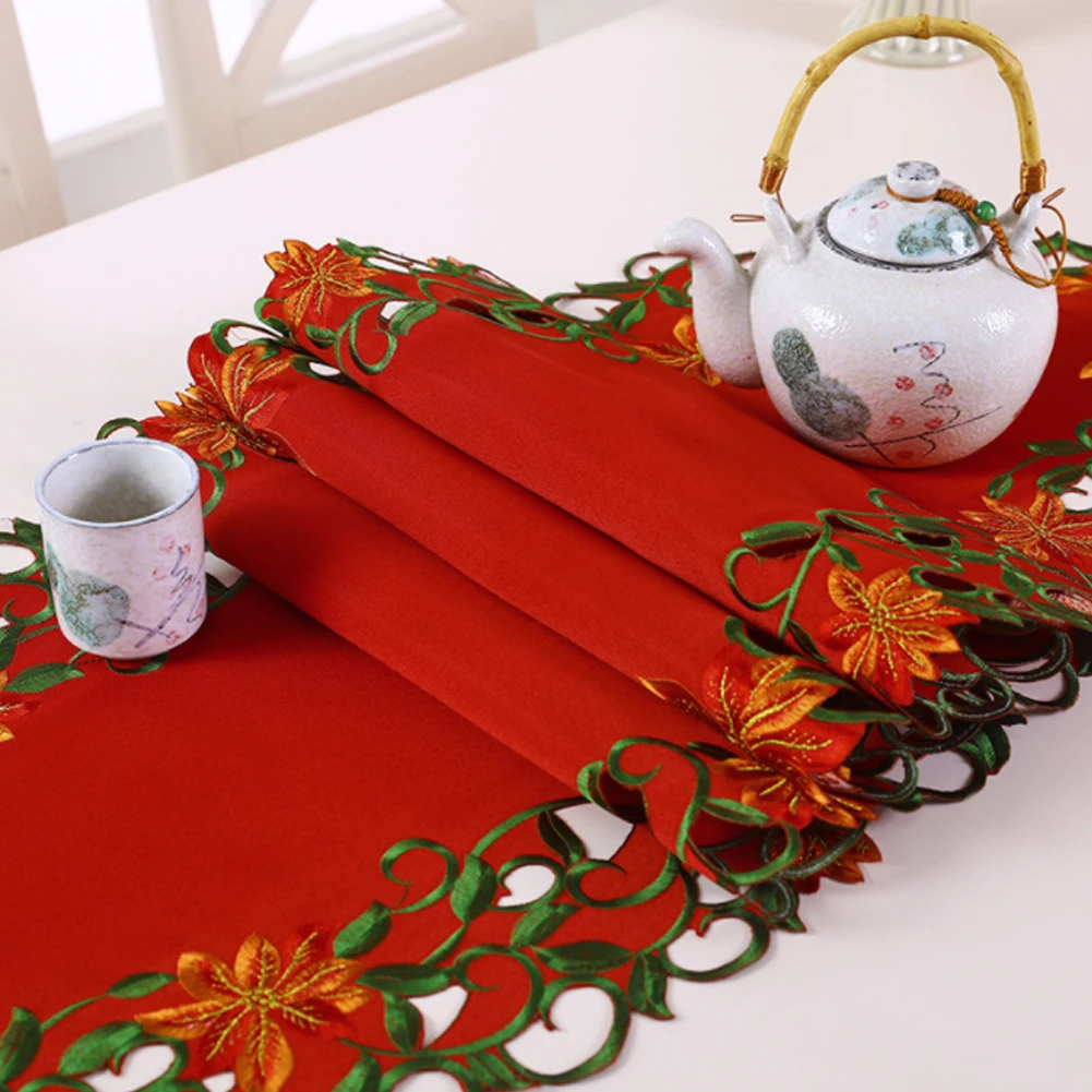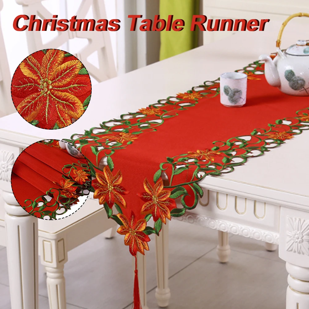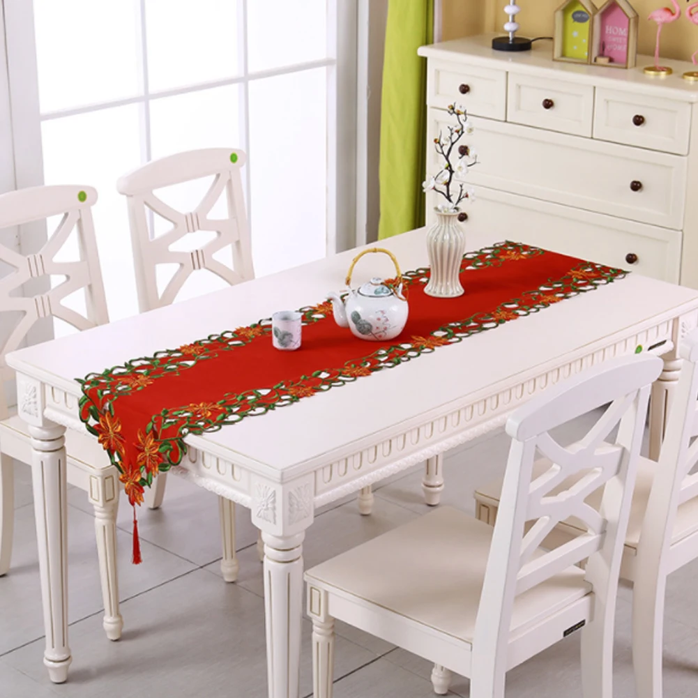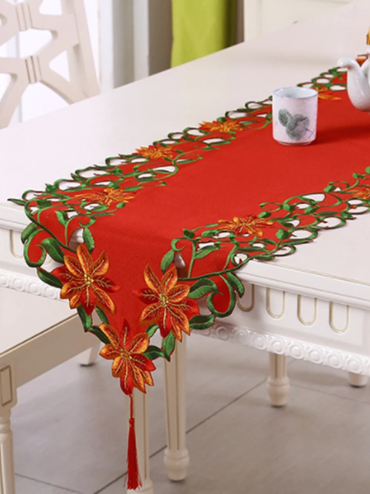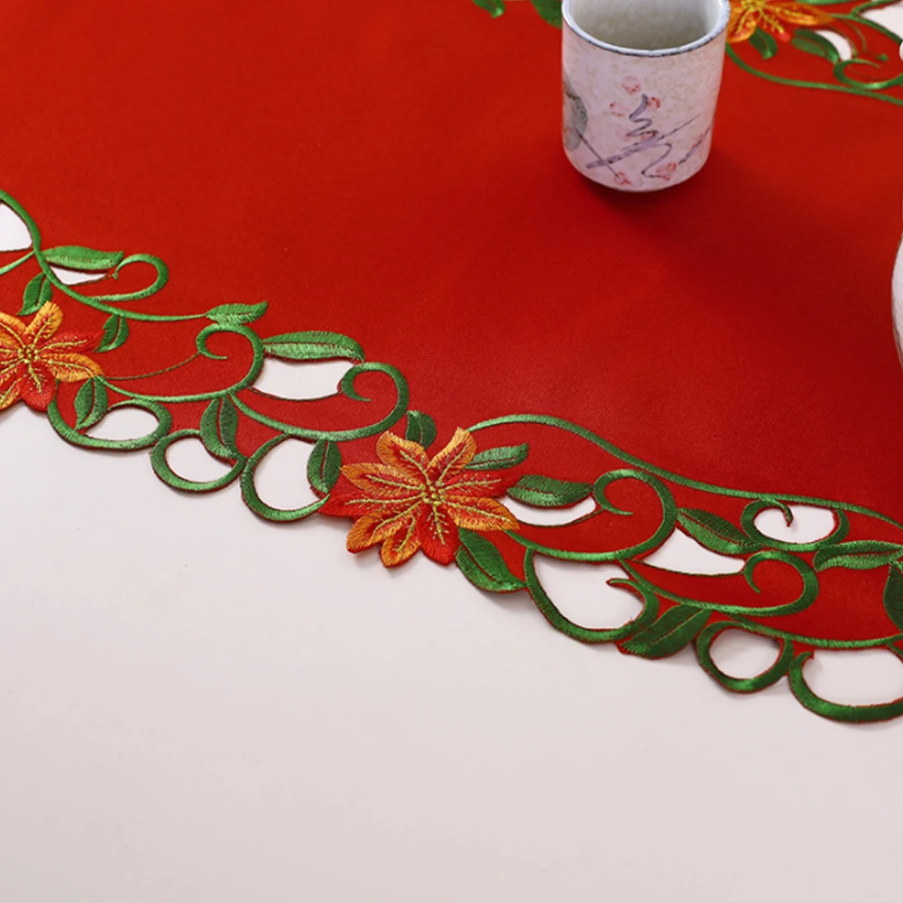 * 2. Красный фон с зеленым рождественским декоративным узором с изысканной вышивкой, эта скатерть идеально подходит для рождественского настольного декора.