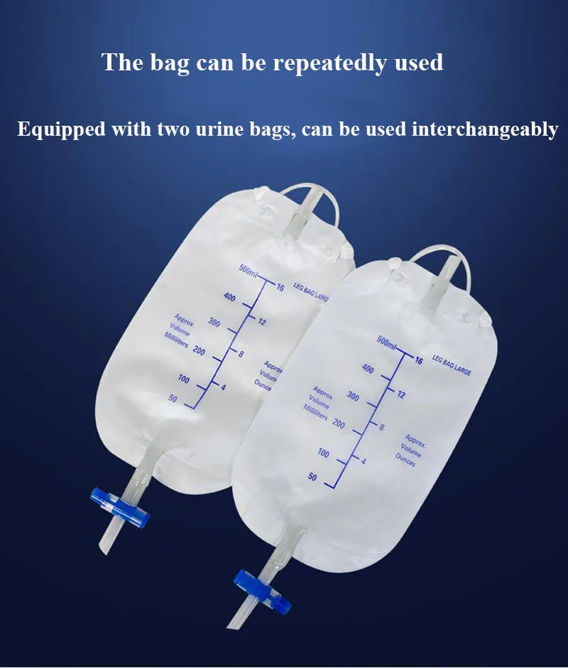 4. Мягкая и безопасная силиконовая воронка. Сливной переключатель 500 мл. 2 шт. мешка для мочи. Добавьте повязку, закрепленную на ножке.