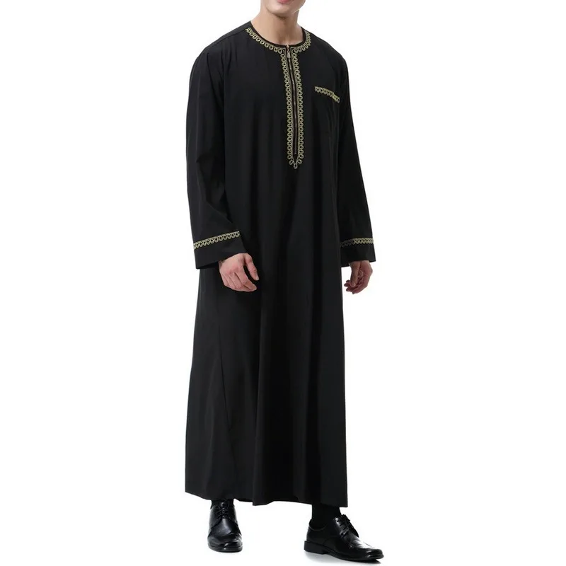 Solid Color Floral Print Long Length Tops Round Neck Zipper Casual Loose Men's Shirt