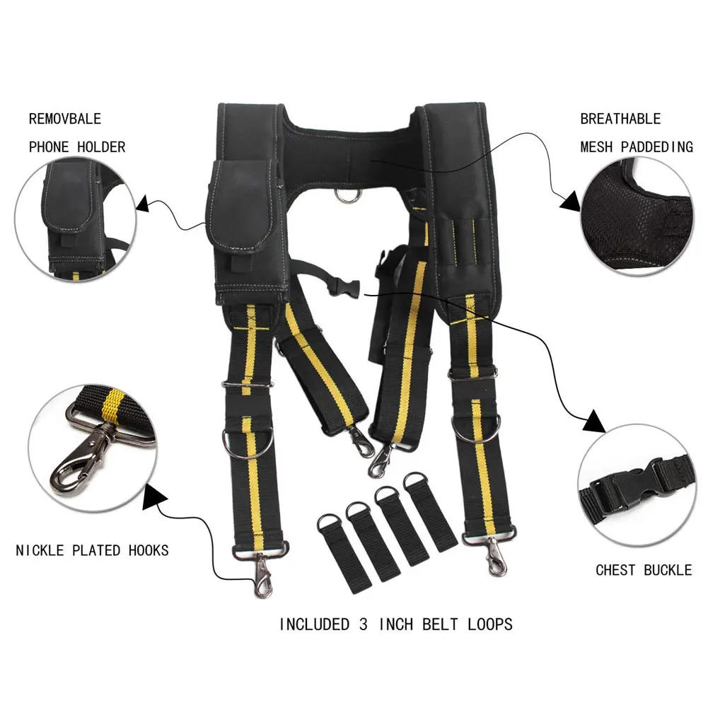 Пояс для подтяжек изготовлен из полиэфирного материала, который является прочным и износостойким, удобным и дышащим и используется для длительного использования. Он имеет регулируемый дизайн и может идеально сочетаться с любым рабочим ремнем или ремнем для инструментов. Это отличная идея для подарка на день отцов.