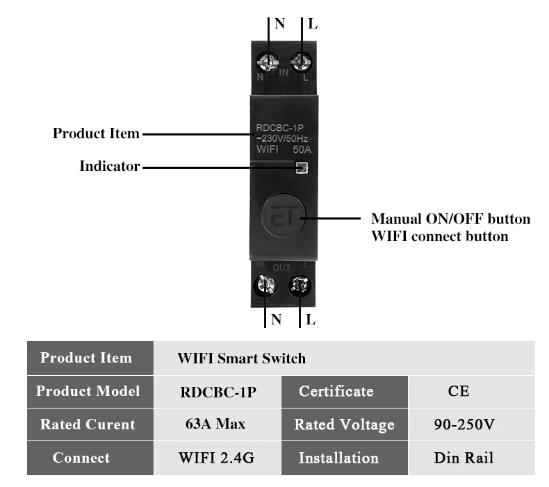 Этот wifi выключатель-РЕЛЕЙНЫЙ ТИП,Не поддерживаетЗащита от короткого замыкания и защита от перегрузки. Когда он установлен в destribtion box, Пожалуйста, подключите MCB внутрь этого продукта. Когда этот продукт подключен к устройству напрямую, вы можете использовать его в качестве реле Wi-Fi, включить/выключить устройство в приложении.