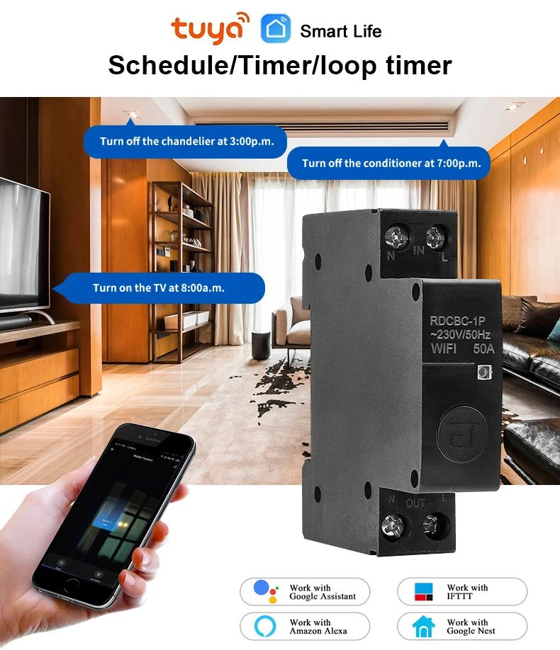 Ситуация 1:Вы можете установить его в коробку destribtion. Затем вы сможете включить/выключить цепь дома в любое время в любом месте, и вы также можете установить таймер или расписание для автоматического включения/выключения цепи.
