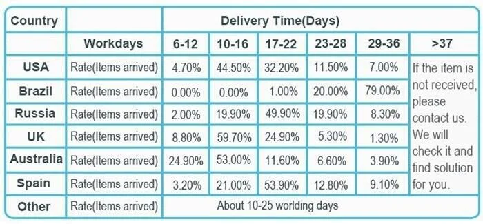 Все проекты будут доставлены в течение 3-5 рабочих дней. Авиаперевозки: 15-20 дней в Азии, Европе и Северной Америке, DHL, ups и FedEx: 3-5 рабочих дней в большинстве стран