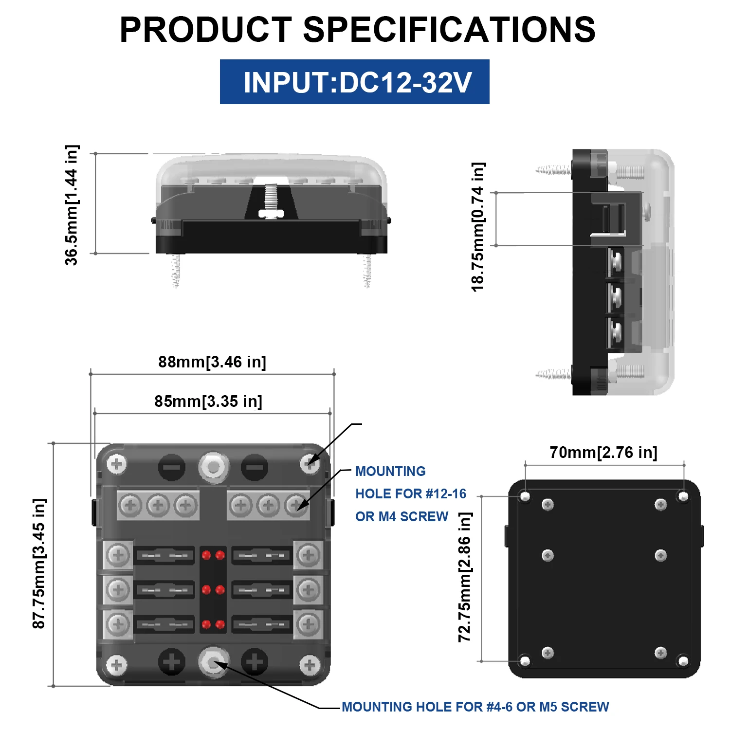 Блок предохранителей для лодки, автомобильный блок предохранителей, водонепроницаемый, 8/12 способов, блок предохранителей, 12 В, 32 В + светодиодный индикатор, панель распределения питания
