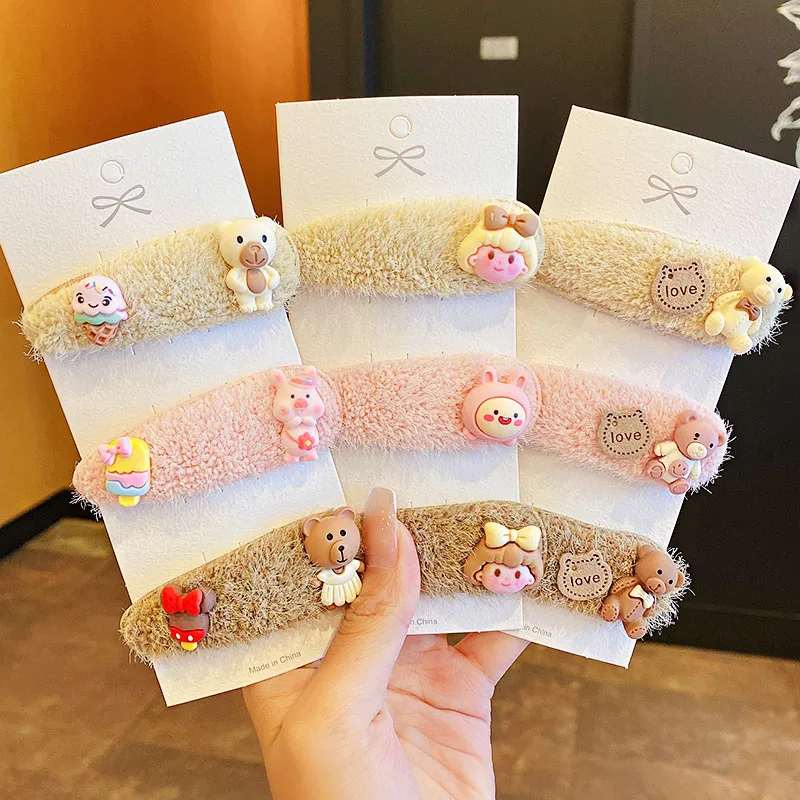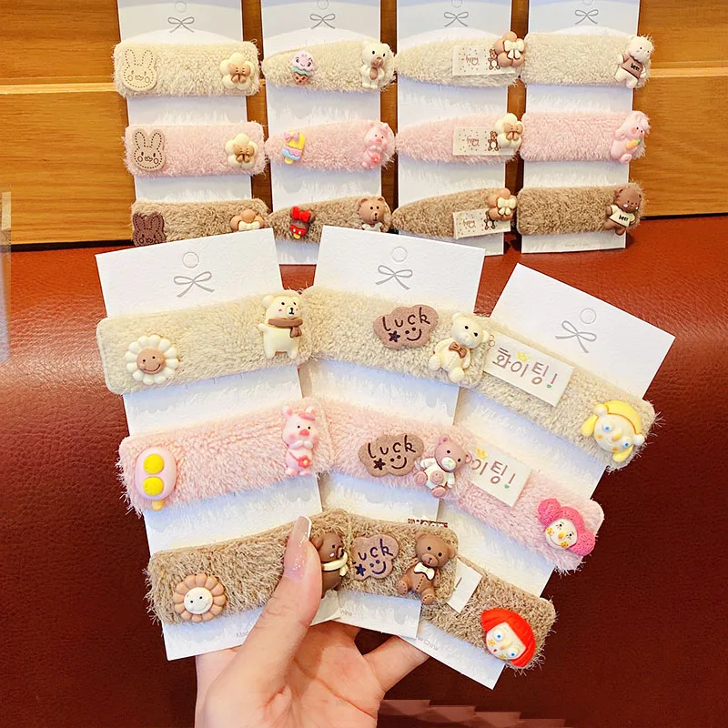3 шт./компл., новые милые плюшевые заколки для волос с героями мультфильмов для девочек, детские милые заколки для волос, модные аксессуары для волос