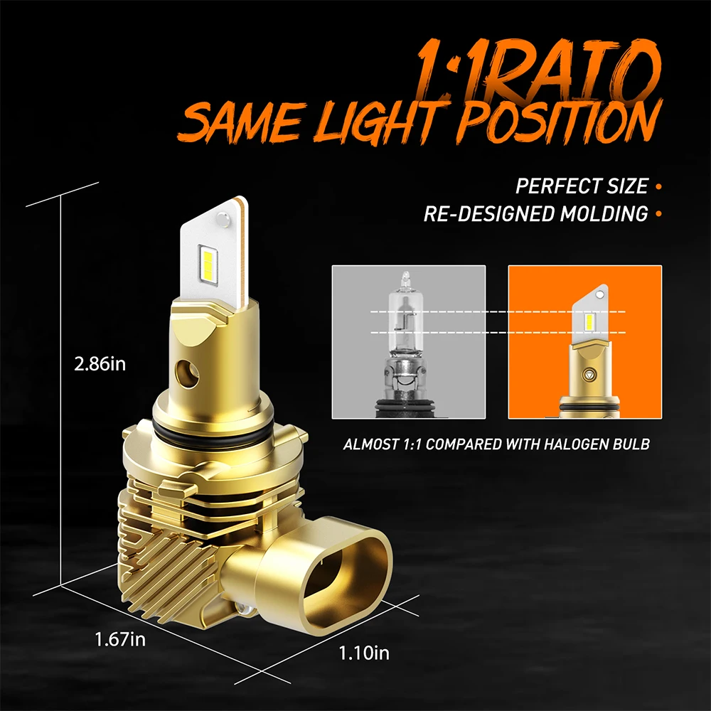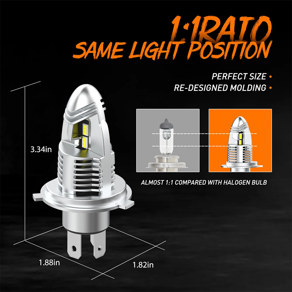 2. 1:1 размер конструкции с галогенной лампой, подходит для 99% транспортных средств.