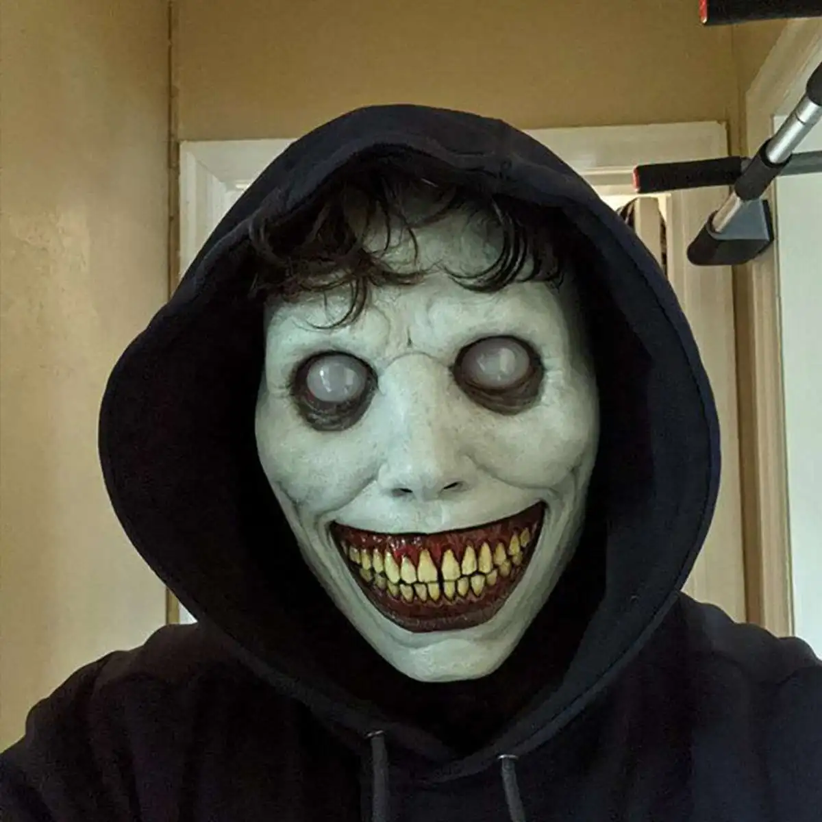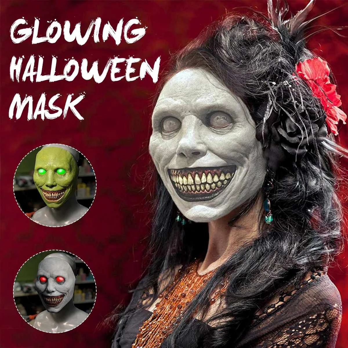 Светодиодный Маскарад на Хэллоуин, ужасная маска, косплей, латексная маска с белыми глазами демона, улыбающийся демон
