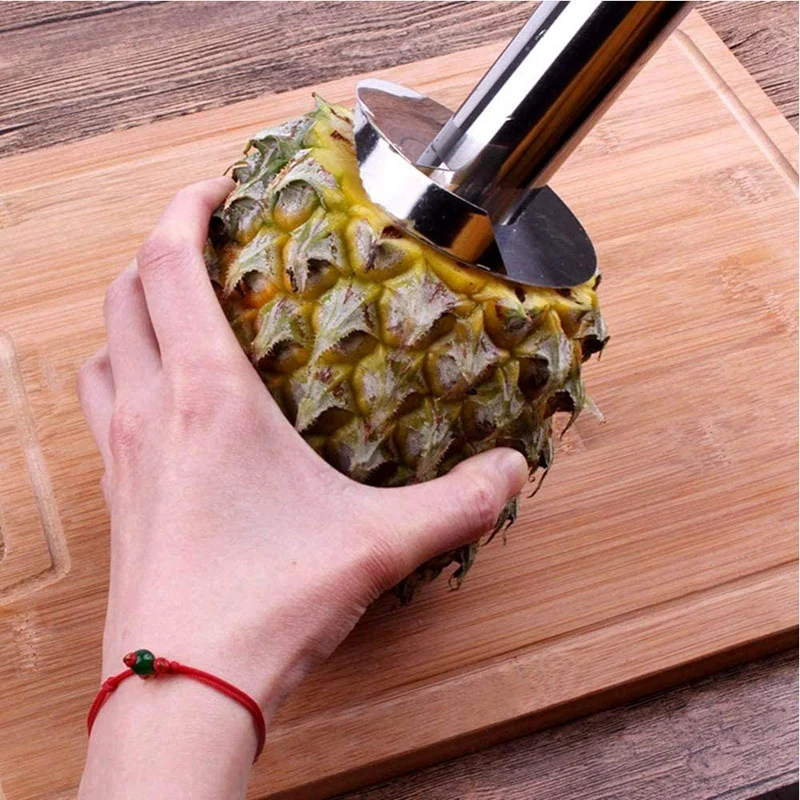 Острое лезвие из нержавеющей стали: лезвие изготовлено из нержавеющей стали, этот слайсер может легко разрезать ананас. Легко сделать идеальное кольцо с ананасом.