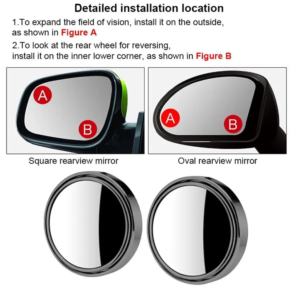 Our Convex Blind Spot Mirror has the newest upgrade with 360°Rotate , maximize your view with wide angle while you drive.