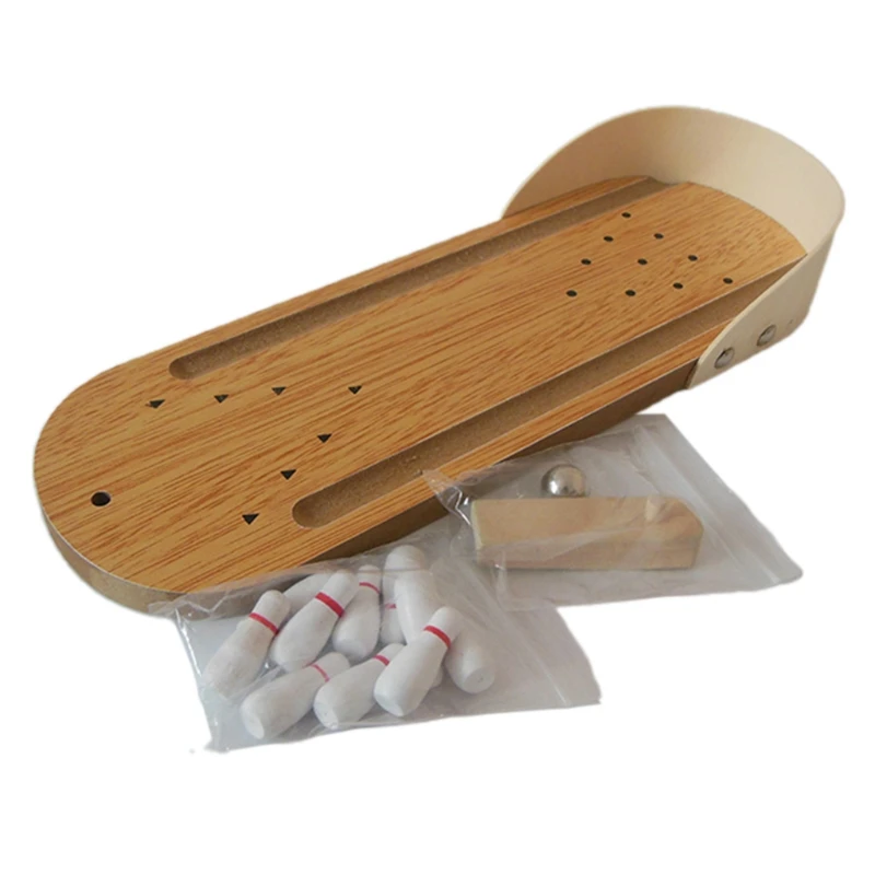 Деревянная боулинг-дорожка с деревянной огранкой, 1 боулинг-трап, 1 стальной мини-шар для боулинга, 10 штифтов. Пандус подвижный, чтобы обеспечить идеальный удар!