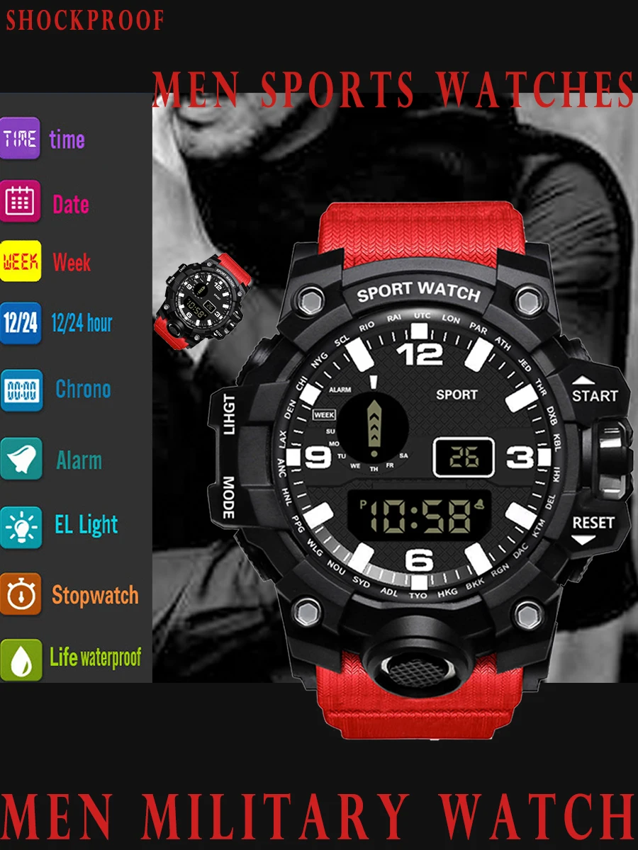 Спортивные часы, военные мужские часы, силиконовые, светодиодный, цифровые наручные часы, противоударные, водонепроницаемые, мужские электронные часы, Relogio Masculino