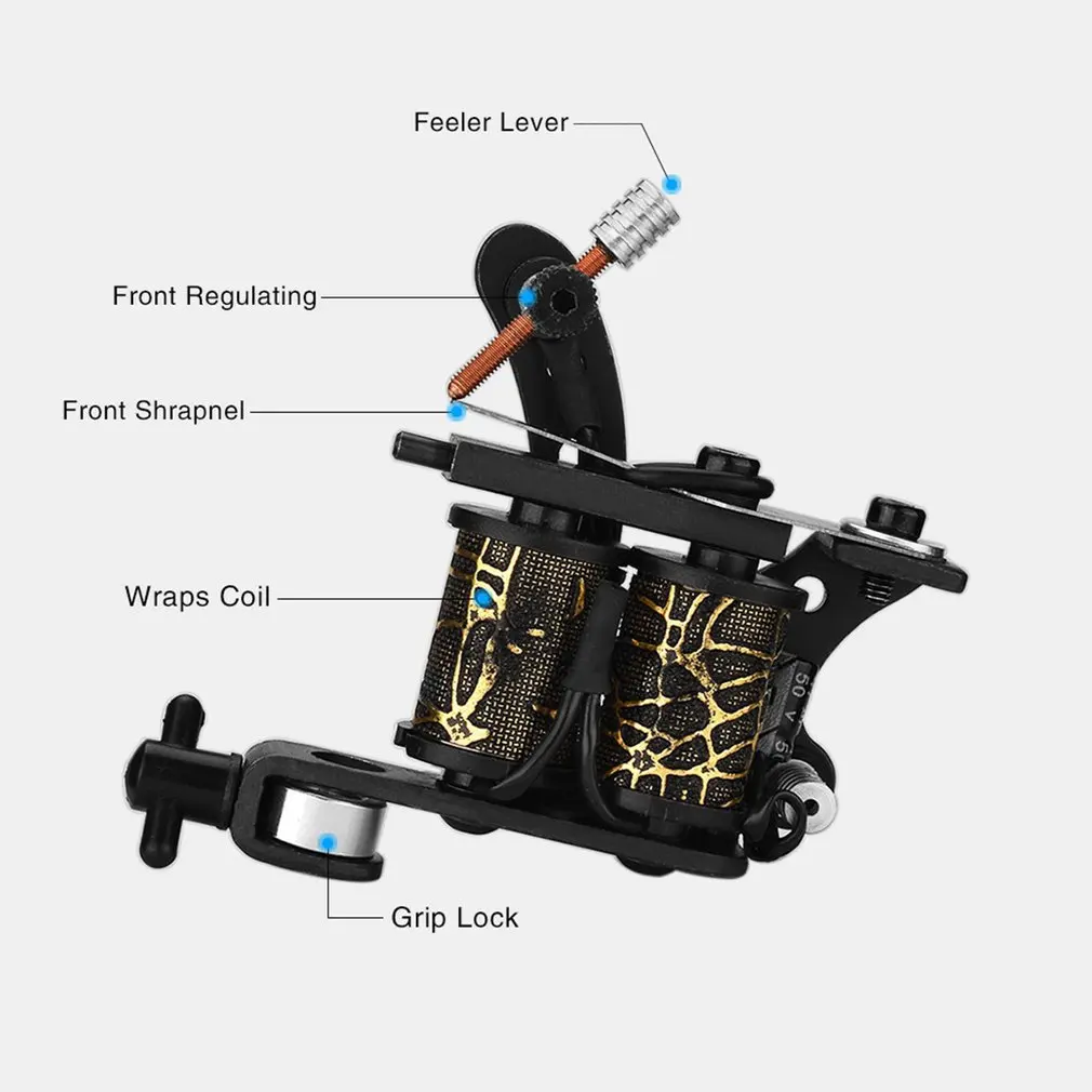 Набор ручек для татуировки тонко вырезан с помощью цинкового сплава, небольшой зазор между аксессуарами и аксессуарами, износостойкость, долгое время использования без горячей, долгой жизни.