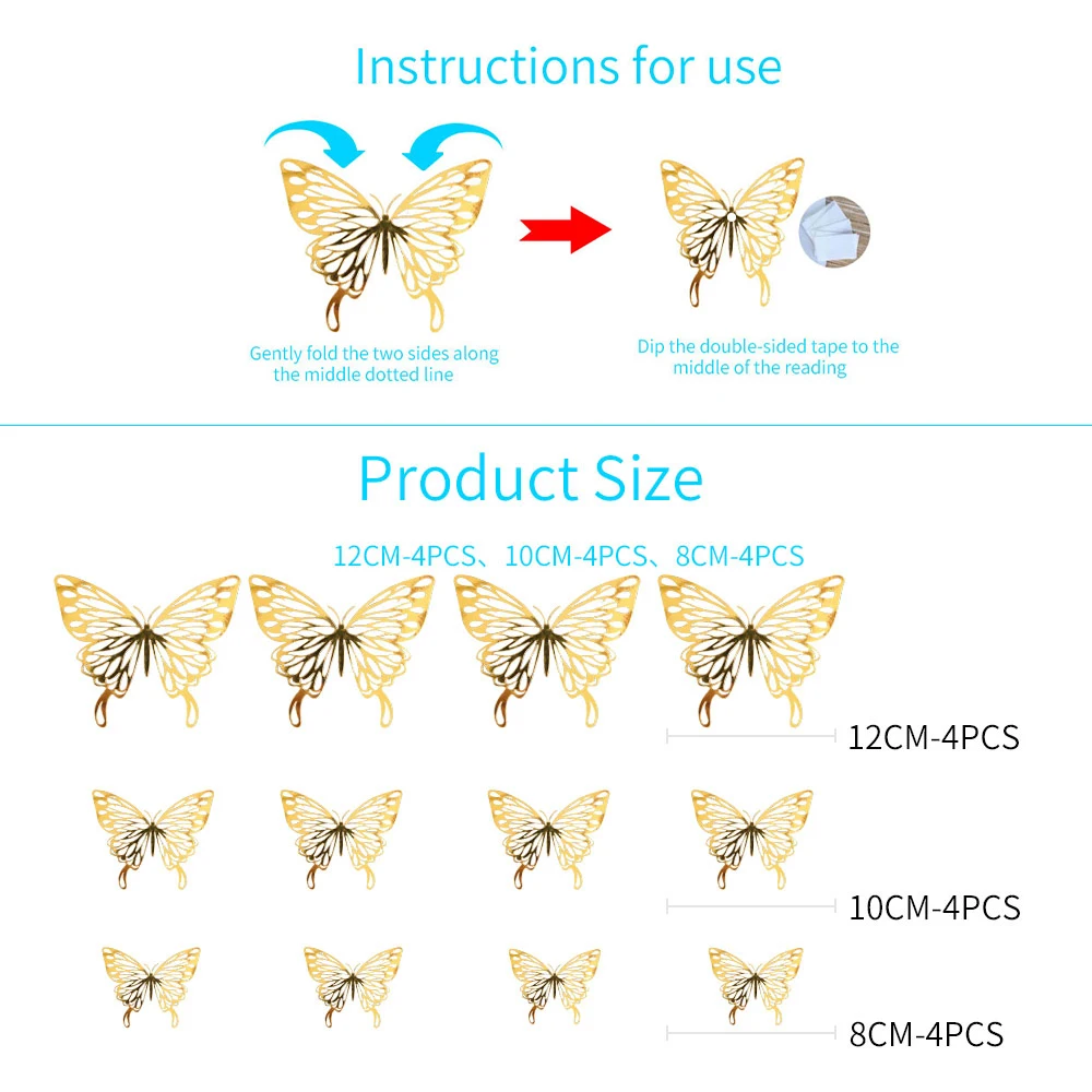 Посылка включает в себя: 12 * наклейки на стену бабочки