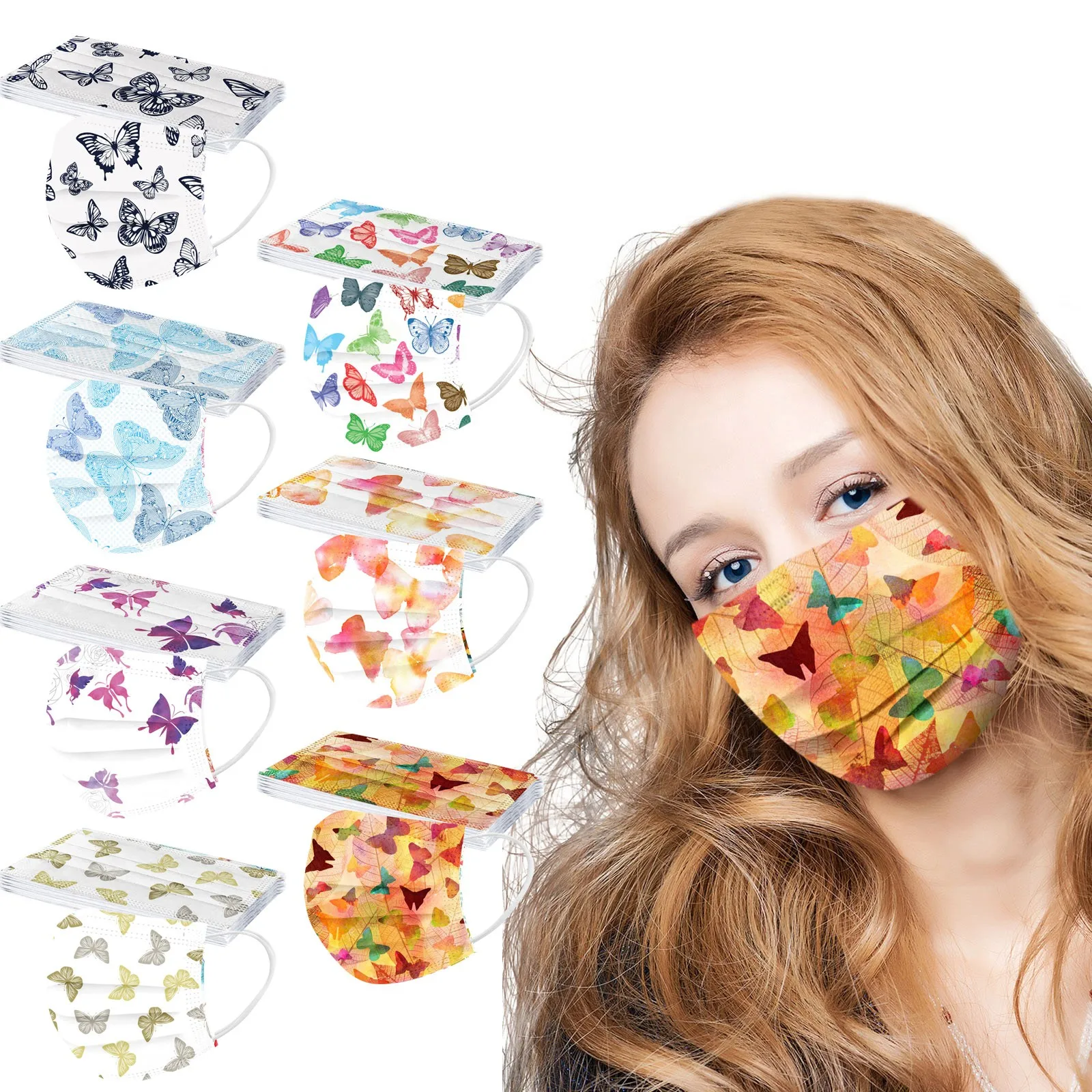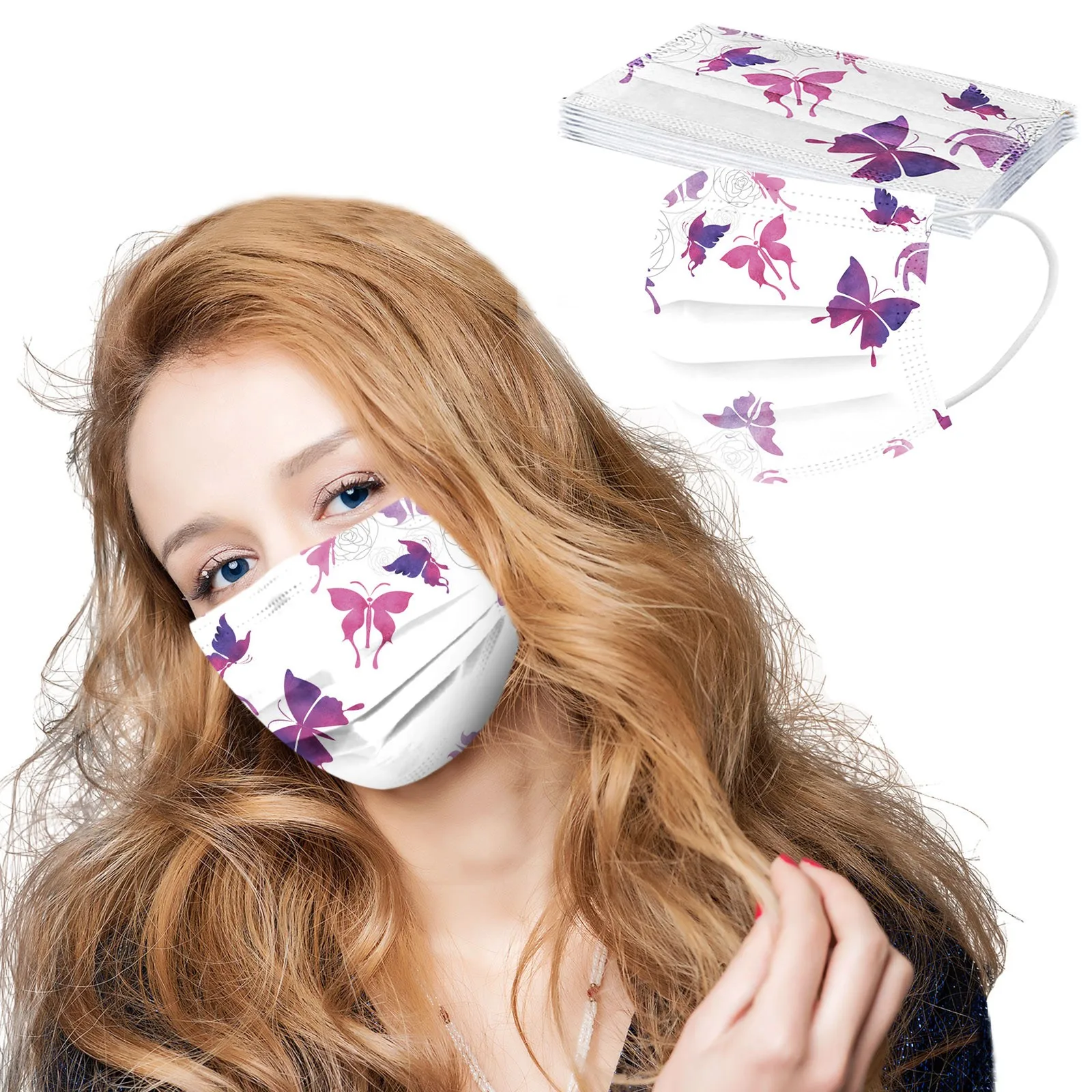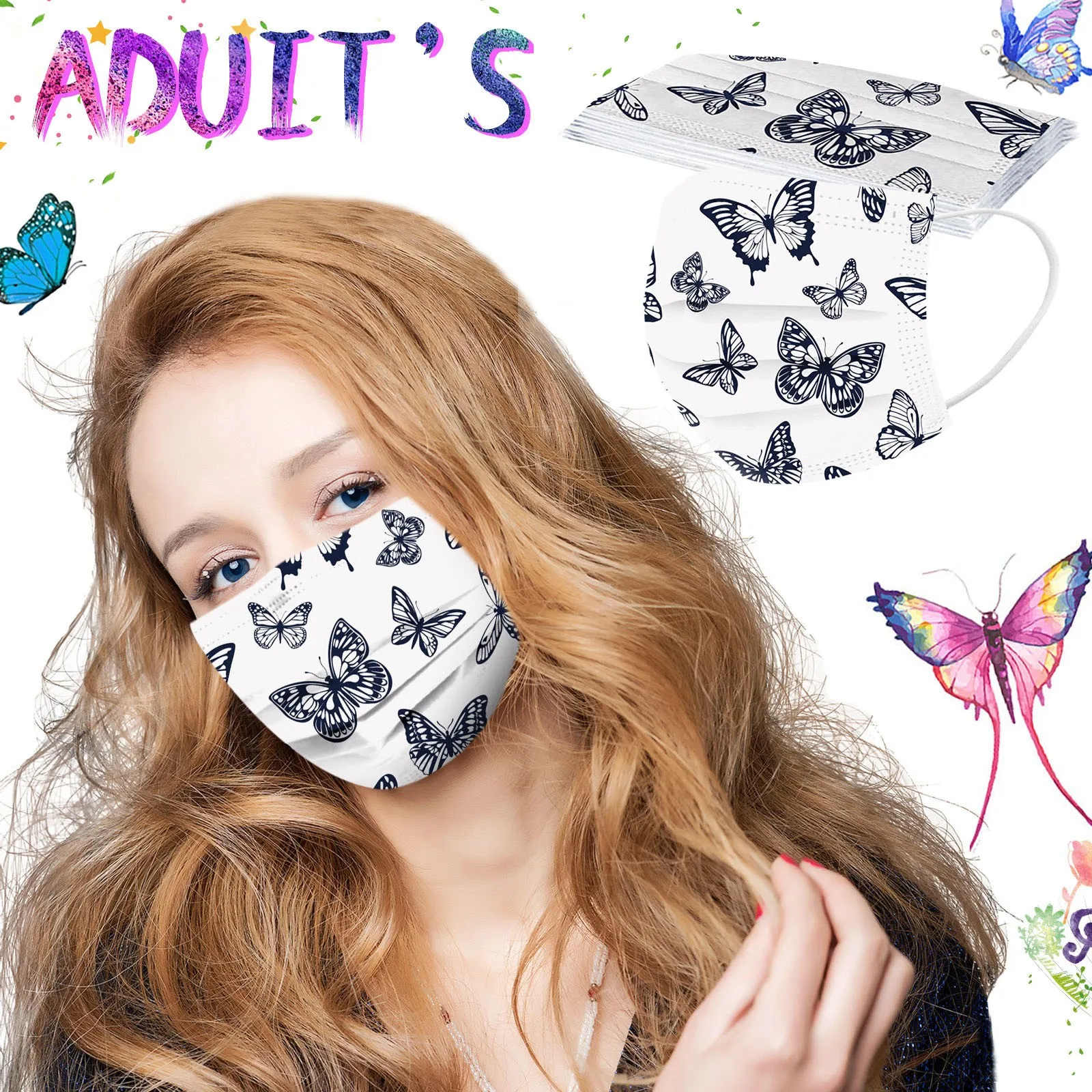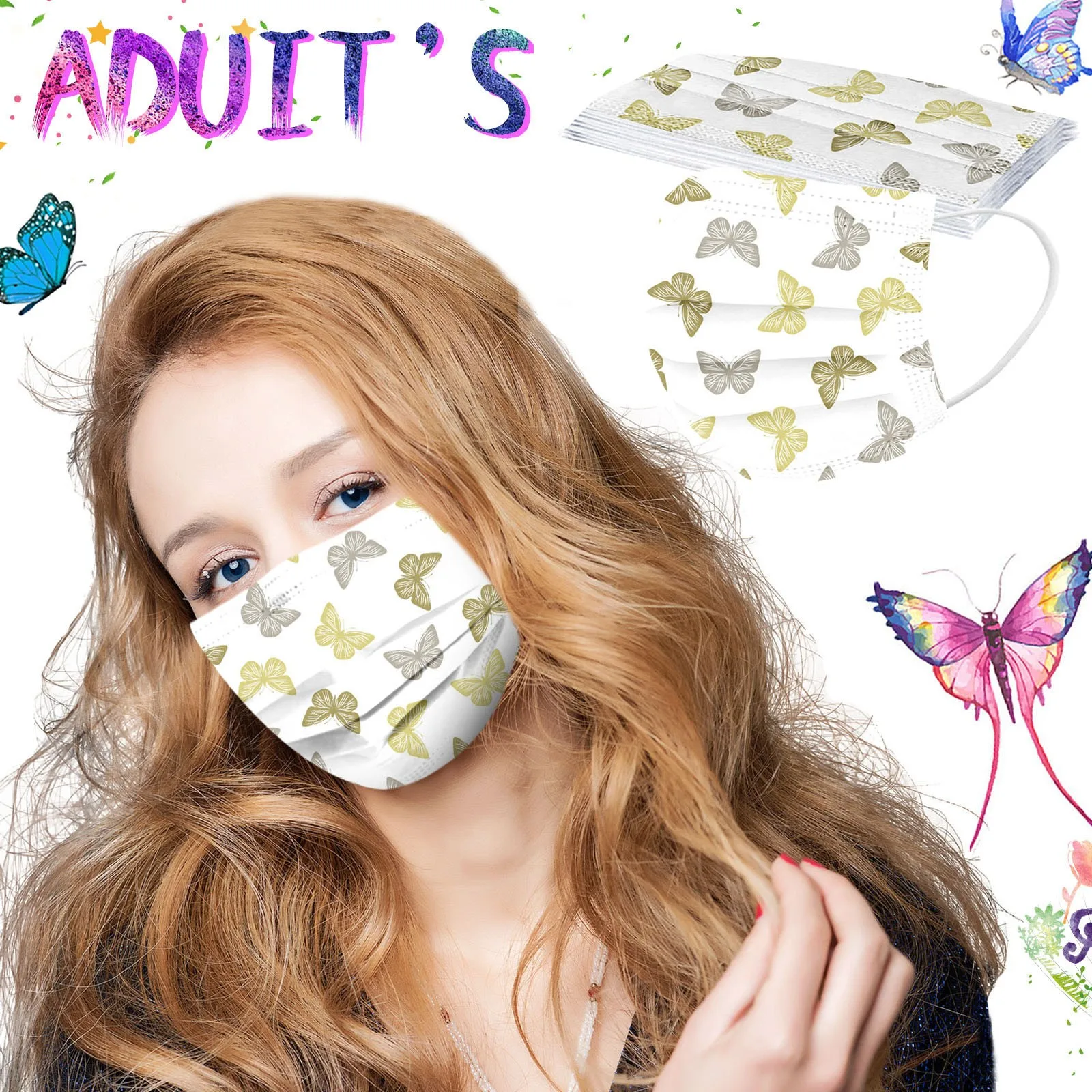10 шт. одноразовые «унисекс» с принтом в виде бабочек, мягкий маски для взрослых 3-Слои маски