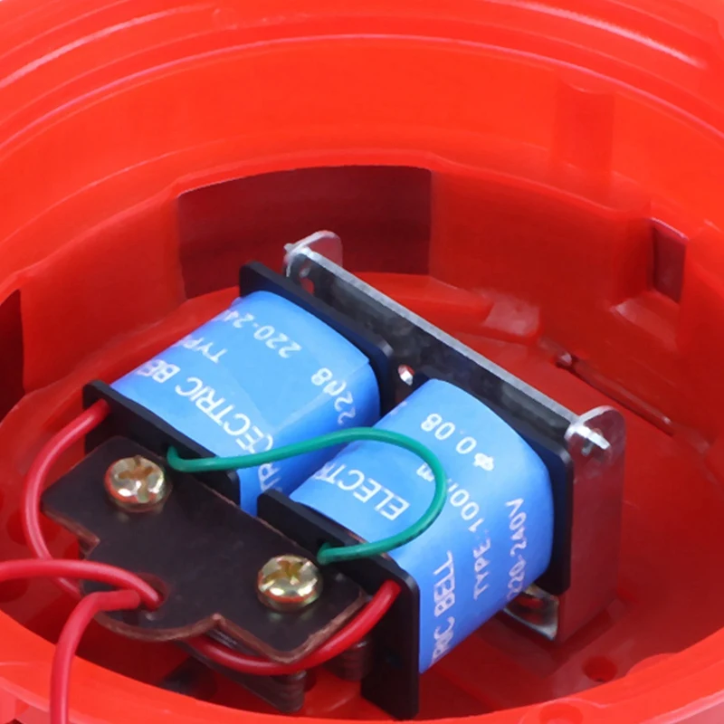 Металлический колокольчик и пластиковая основа, круглая, спроектирована с 2 проводами. Подходит для жилых зданий, офисов, фабрик, школ, магазинов, отелей, фабрик, общественных мест и т. д.