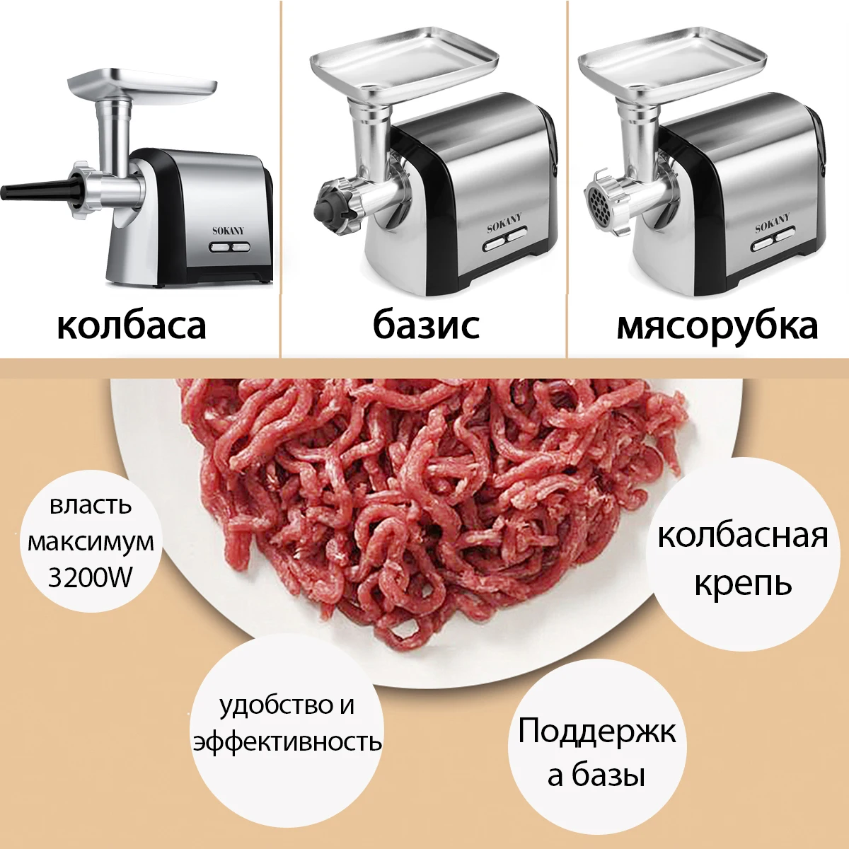 -Высокопроизводительная Мясорубка предназначена для профессионального использования, ее можно использовать в больших кухнях, мясных магазинах или в сфере общественного питания.
