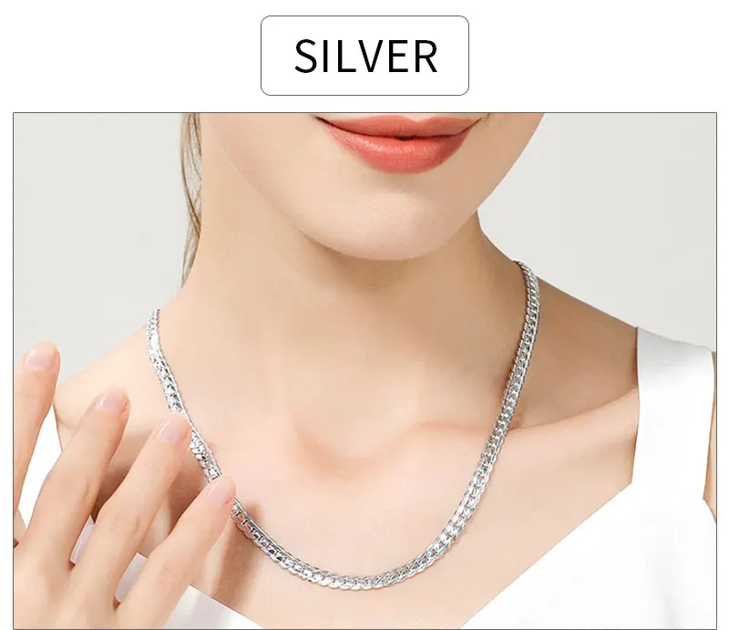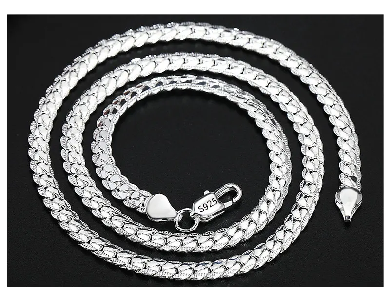 AGTEFFER 925 стерлингового серебра 6 мм Full Боком ожерелье 18/20/22/24 дюймов цепи для женщины и мужчины, модное ювелирное изделие для помолвки, свадьбы