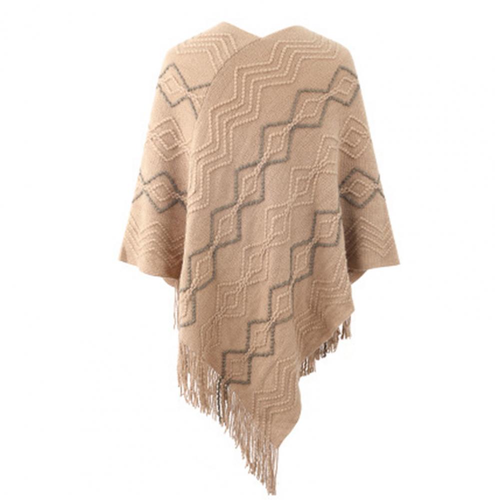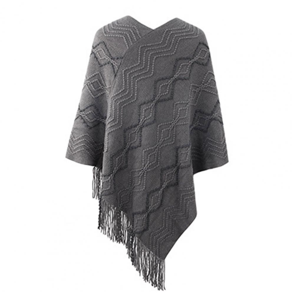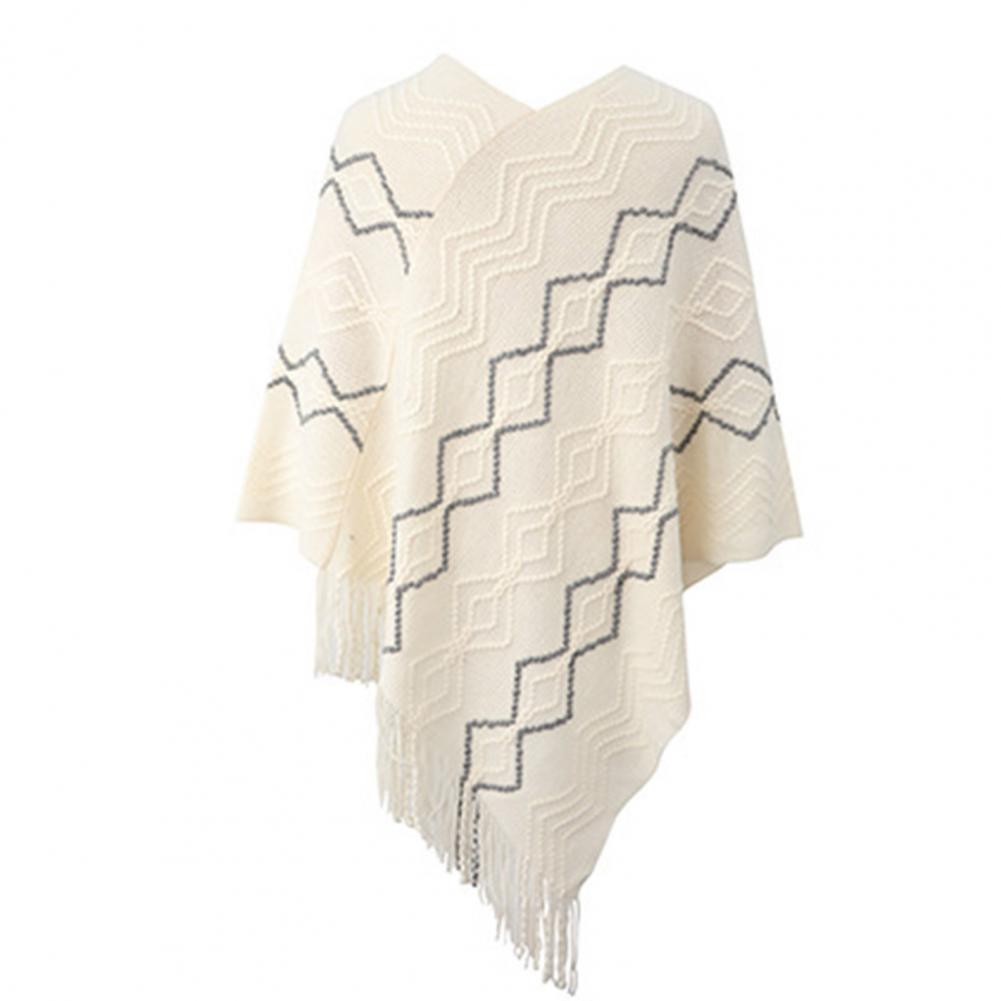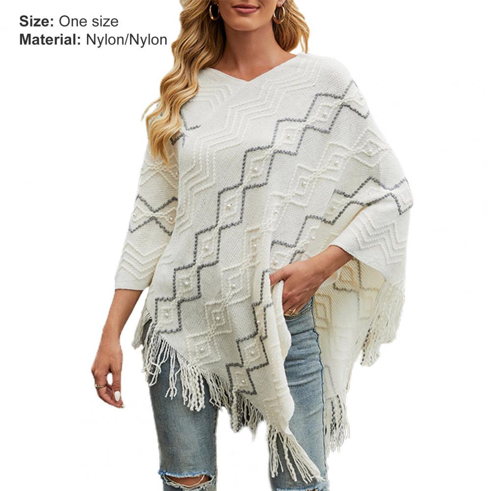 2021 осенне-зимние женские свитера пончо вязаные плащи свитер с v-образным вырезом Асимметричный Подол кисточки пальто полосатый вязаный пуловер