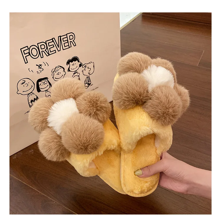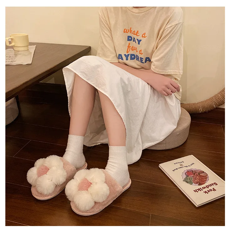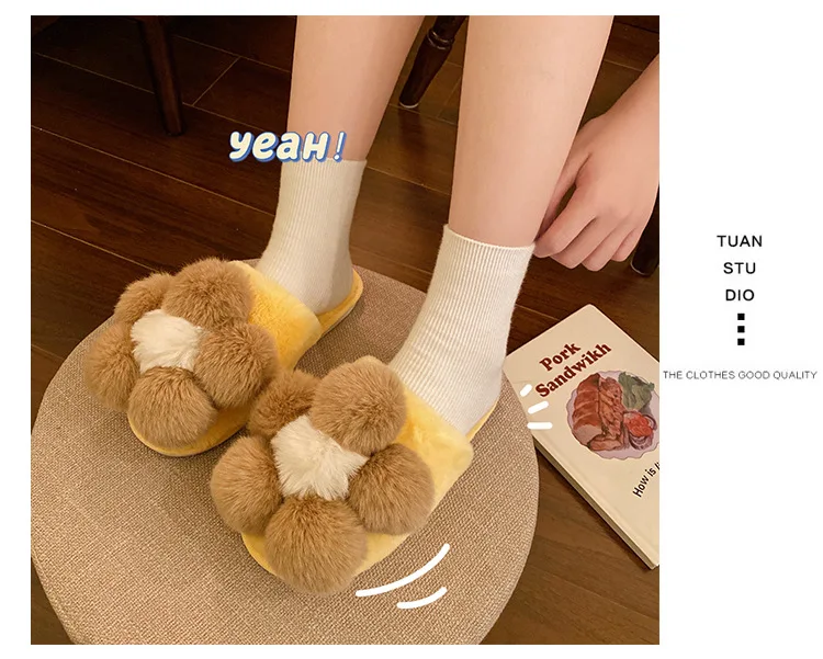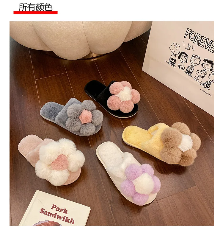 Стиль: сказочные брендовые меховые тапочки с цветочным принтом; Женская обувь