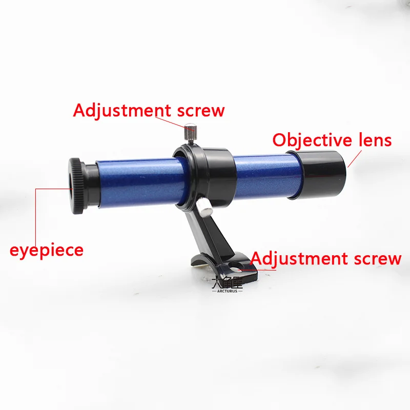 Finder scope, небольшой телескоп малой мощности, прикрепленный к большому телескопу, чтобы помочь наблюдателям найти местоположение небесных тел. Зеркало finder-это преломляющий телескоп для визуального поиска, прикрепленный к основной трубе телескопа для поиска небесного тела для наблюдения. Его функция заключается в том, чтобы направлять небесное тело, которое будет наблюдаться в центре поля зрения главного телескопа. В зеркале finder обычно используется двойное разделение или двойная коллоидная линза, а фокусное расстояние расположено с помощью сетки для прицеливания.