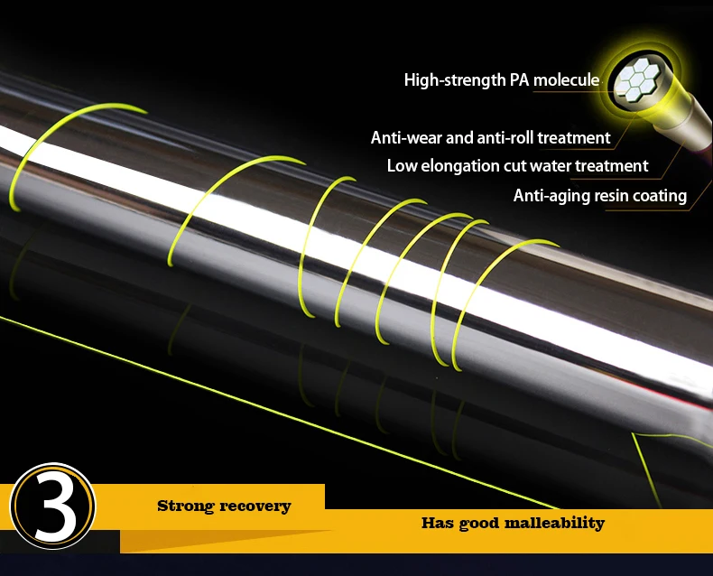 Фторуглеродное покрытие плотно прилегает к пустотам молекул нейлона, что делает Корпус Провода более сильным и низким коэффициентом преломления. Фторуглеродное покрытие изолирует вторжение воды в молекулы нейлона, обеспечивая, что отношение повреждения тела лески уменьшается после того, как леска входит в воду, тело лески не размывается, И покрытие поверхности лески гладкое, уменьшая эффект поверхностного натяжения на леске, И скорость резки воды линии быстрее.