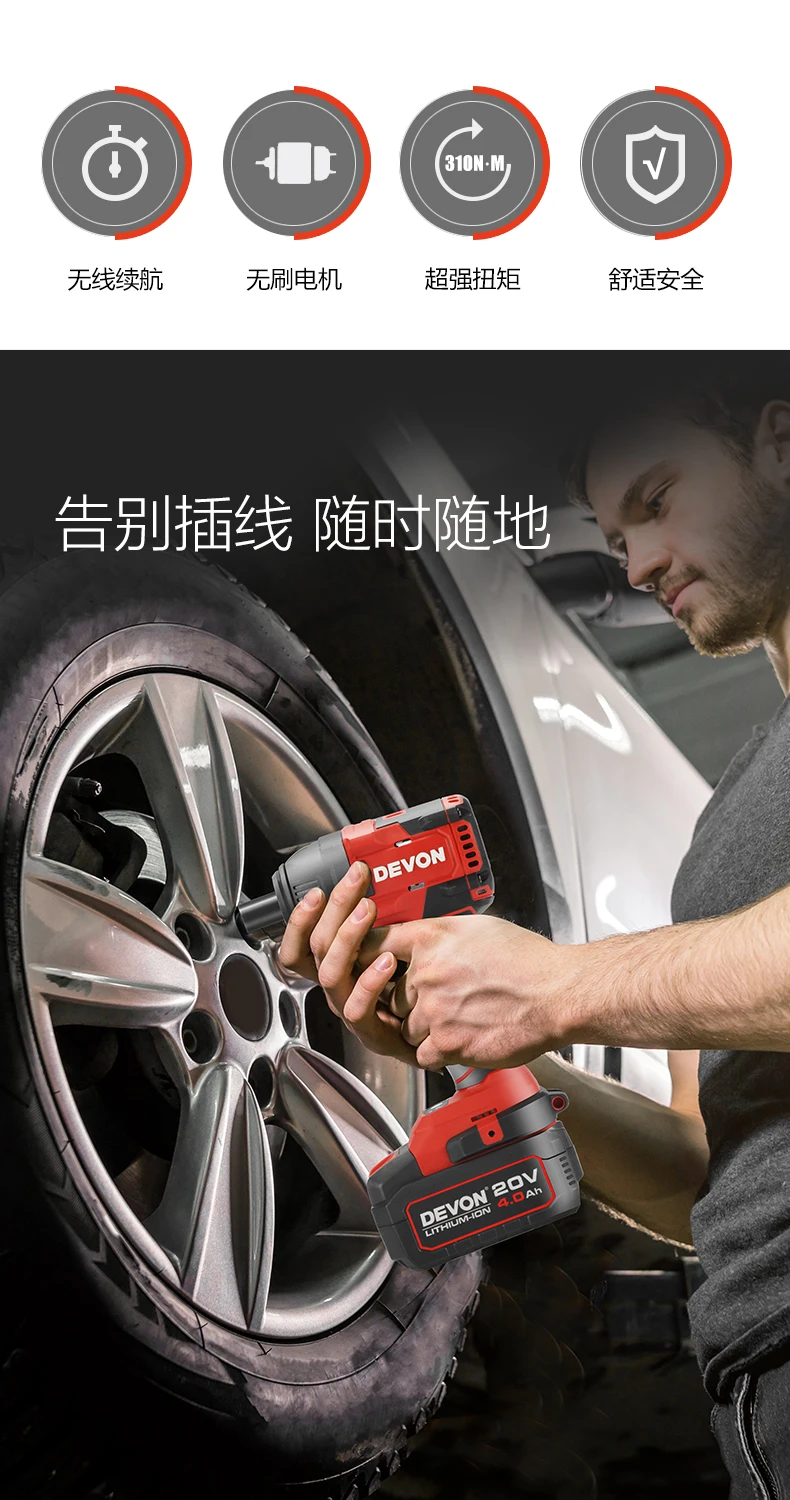 DEVON беспроводной ударный ключ 5733-PLUS 350Nm бесщеточный мотор Share 20V литиевая батарея платформа электроинструмент