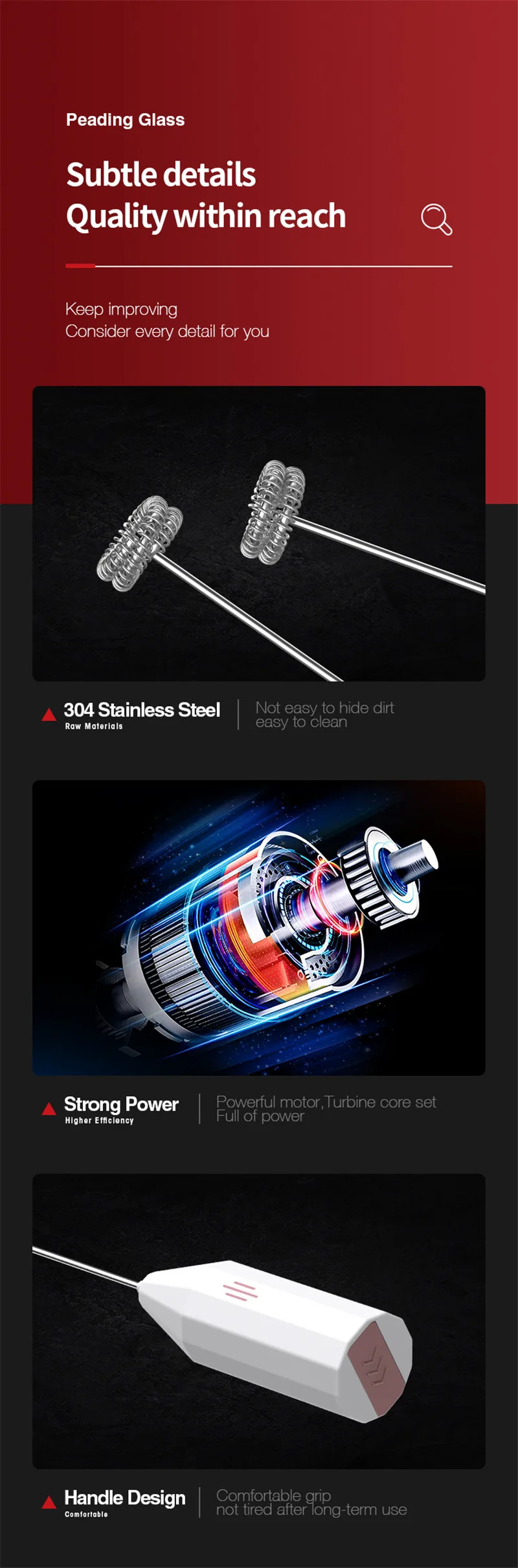 2. Пищевая нержавеющая сталь марки 304, смесительная головка, безопасная и Гигиеничная, легко моется, все, что вам нужно сделать, это положить ее в пресную водопроводную воду и перемешать бар, чтобы очистить его.