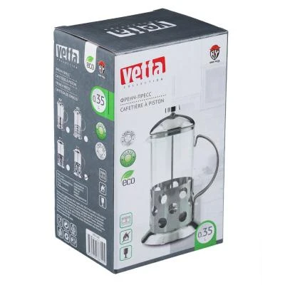 Френч-пресс объемом 350мл в корпусе из нержавеющей стали, с фильтрующим поршнем из нержавеющей стали, подходит для заваривания кофе и чая.