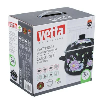 Need a safe, quality and beautiful tableware for the kitchen? Enameled pan Vetta illusion meets all the declared criteria. Perfectly smooth surface is easily cleaned from dirt, eliminates the reproduction of bacteria. In such a container you can store the first and second dishes. Cooked soup will not soak with the smell of metal and will not spoil.