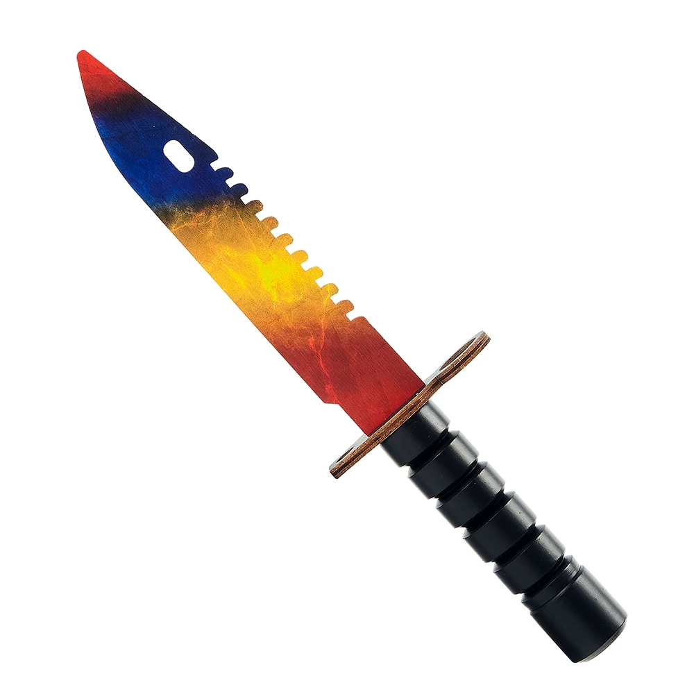 Это высококачественная деревянная копия штык-ножа, который использовался армией США более 20 лет. Но по настоящему знаменитым этот формат клинка сделала игра CS GO. Любой игрок узнает его с первого взгляда, и однозначно захочет заиметь такой в своей коллекции. Несмотря на богатую боевую историю оригинала, этот клинок абсолютно безопасен. Разумеется, не стоит забывать о том, что нож выполнен из дерева. Этот материал не любит влагу и перепадов температур. Также не рекомендуется воздействие больших нагрузок и использование клинка в качестве метательного снаряда. Соблюдение этих рекомендаций гарантирует, что реплика прослужит вам очень долго. Для ее создания используется очень прочная березовая фанера, а принт наносится при помощи яркой и стойкой краски. В отличии от наклеек, которые предлагаются на рынке в огромном множестве, такой скин долго сохраняет первоначальный облик. Серия 1,6 - это высочайшее качество по доступной цене. Длина - 280 мм Ширина - 26 мм Высота - 73 мм.