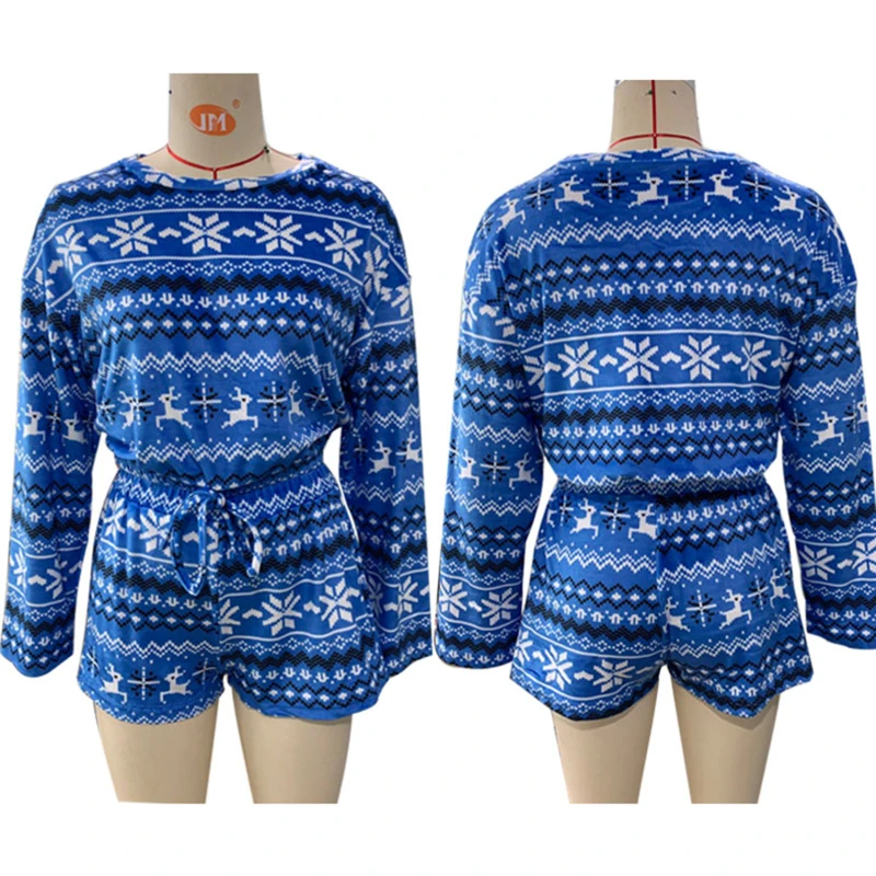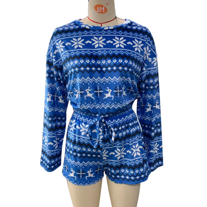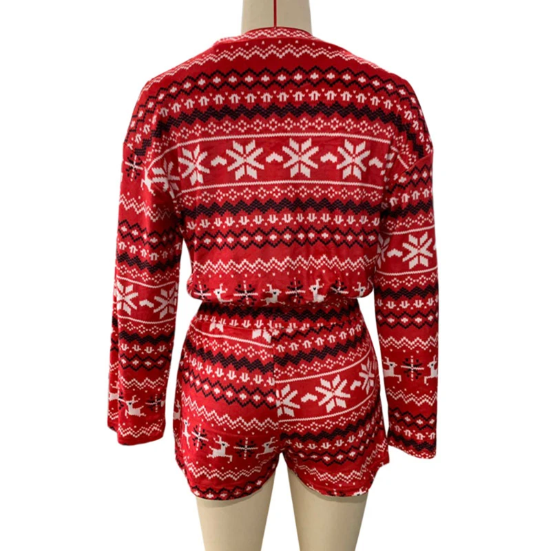 Новинка 2021, женские рождественские пижамные комплекты, укороченный топ с длинными рукавами и шорты, 2 предмета, Рождественская Снежинка с принтом, вязаная Осенняя домашняя одежда