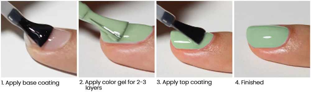 3. Нанесите цветной гель 2-3 слоя s и каждый слой УФ-лампы отверждения 60-120 S.
