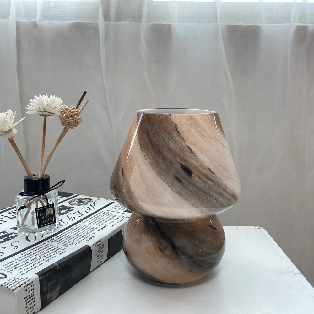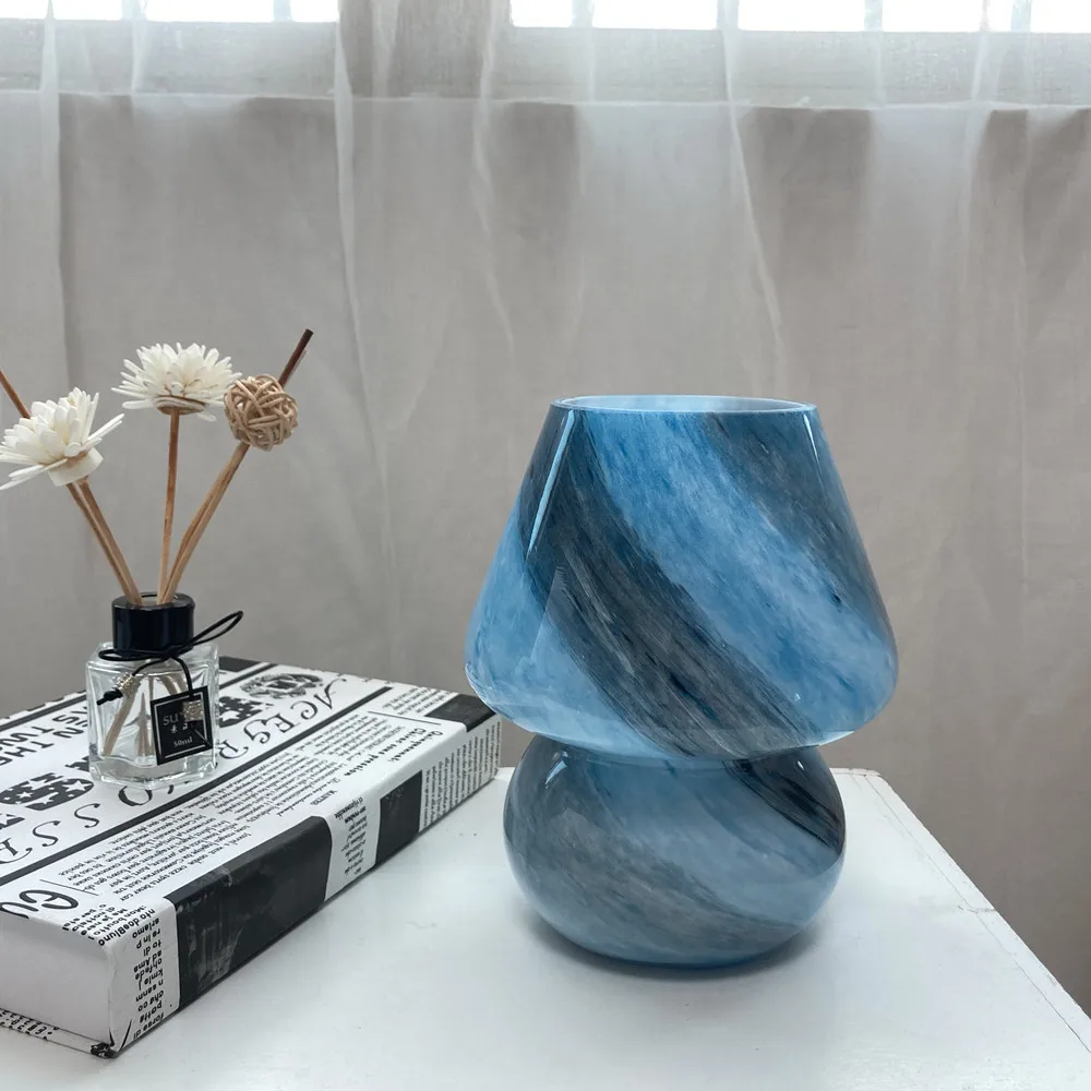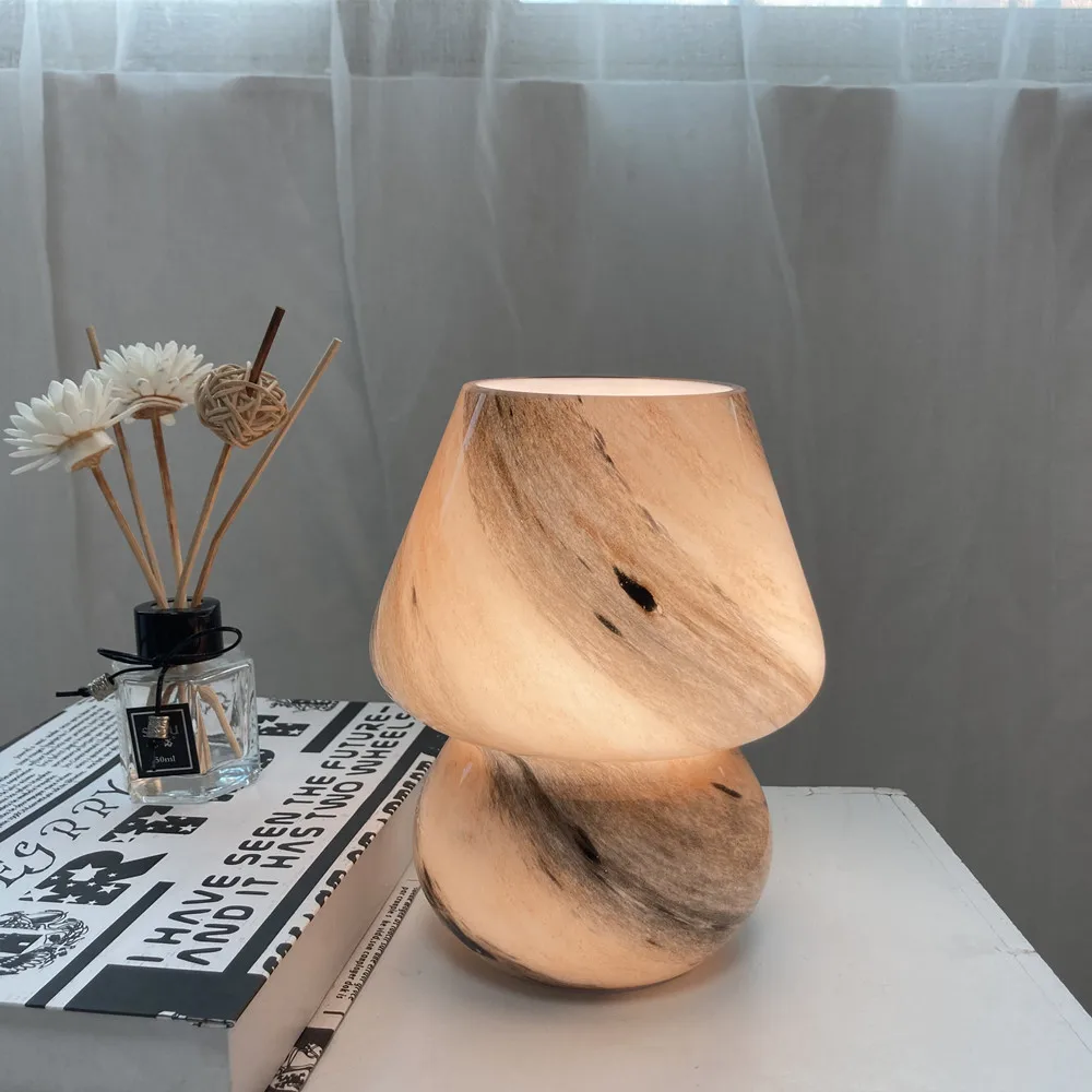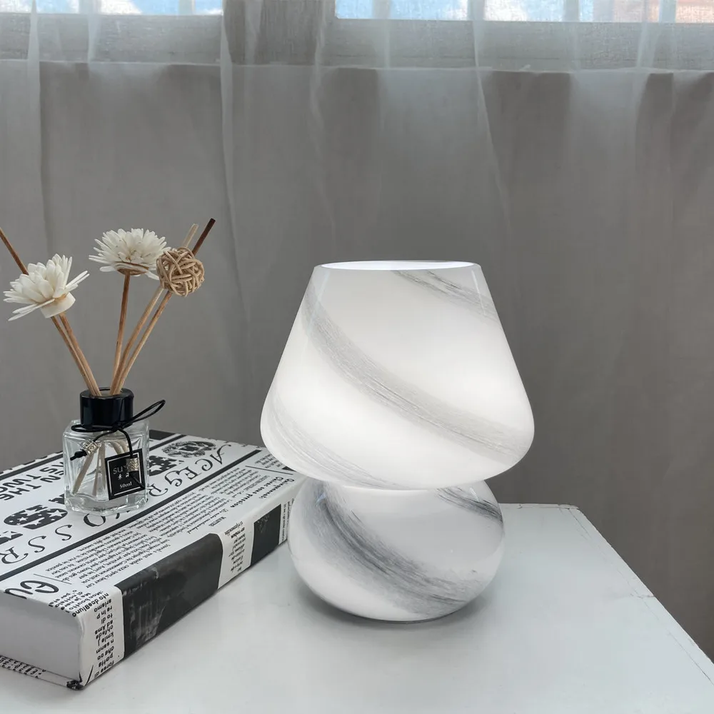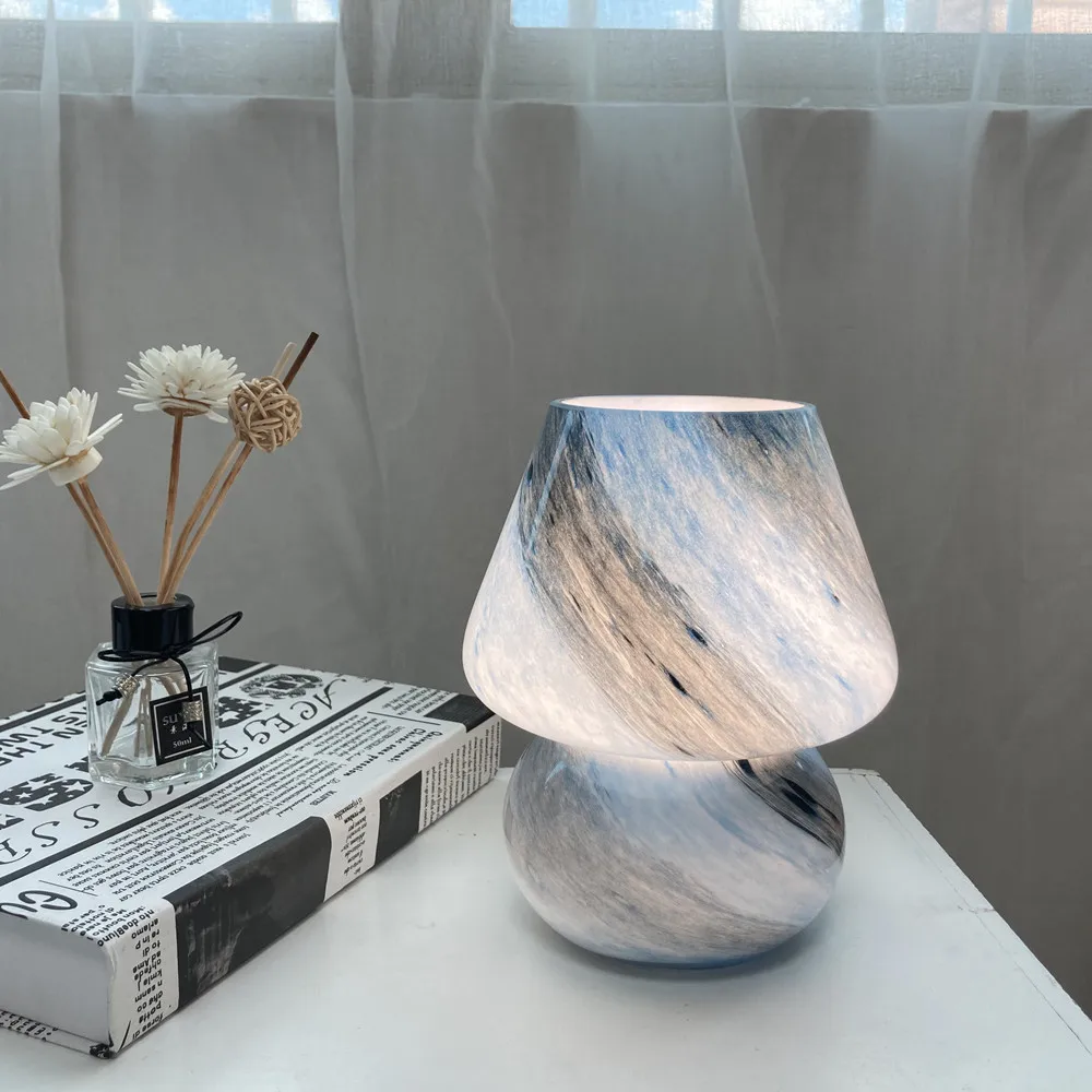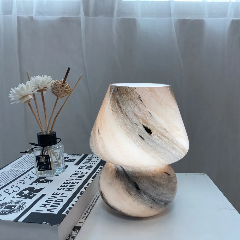 Корейская Ins стильная Грибная настольная лампа стеклянная Луна земля полосатая прикроватная стеклянная Настольная лампа Декор милое стекло полупрозрачный Настольный светильник
