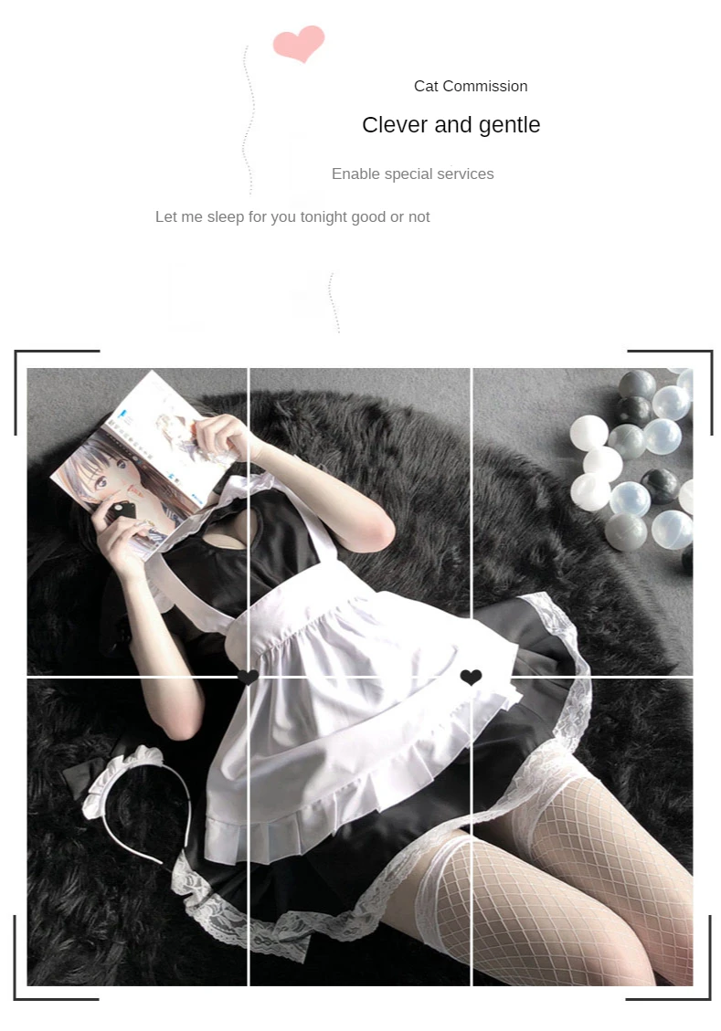 [Товары включают в себя] головной убор * 1, черное платье * 1, белый фартук * 1, трусики в форме буквы т * 1