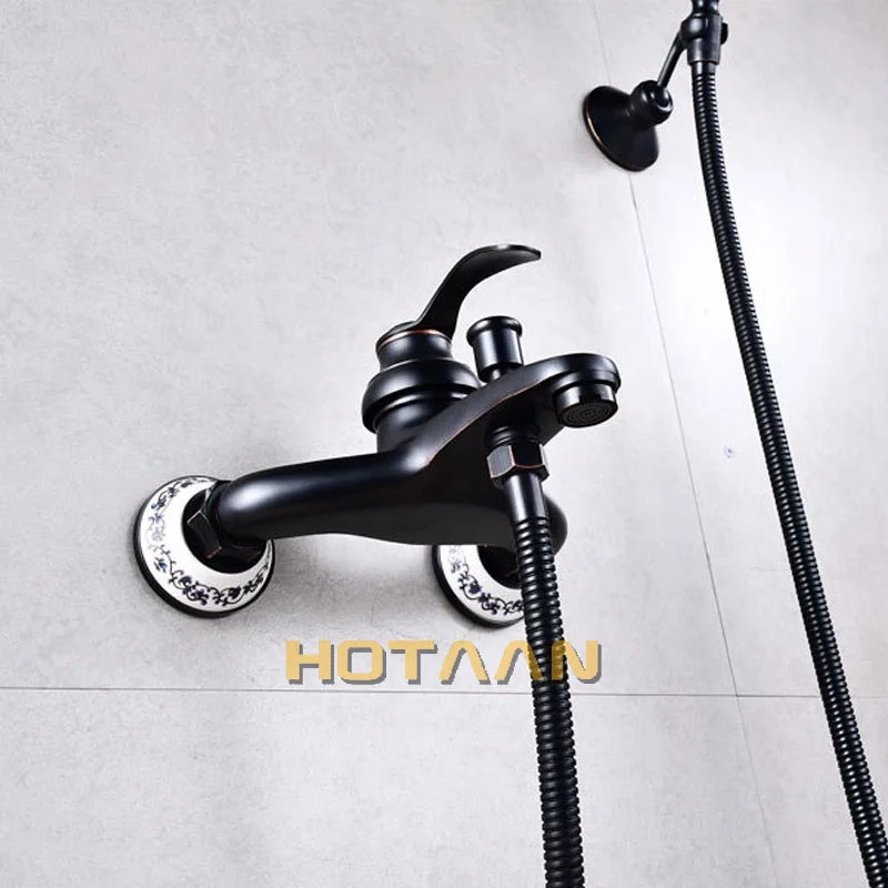 Бесплатная доставка, античная латунь, ванная комната, ванна, настенная, ручная душевая головка, набор, набор душевых смесителей