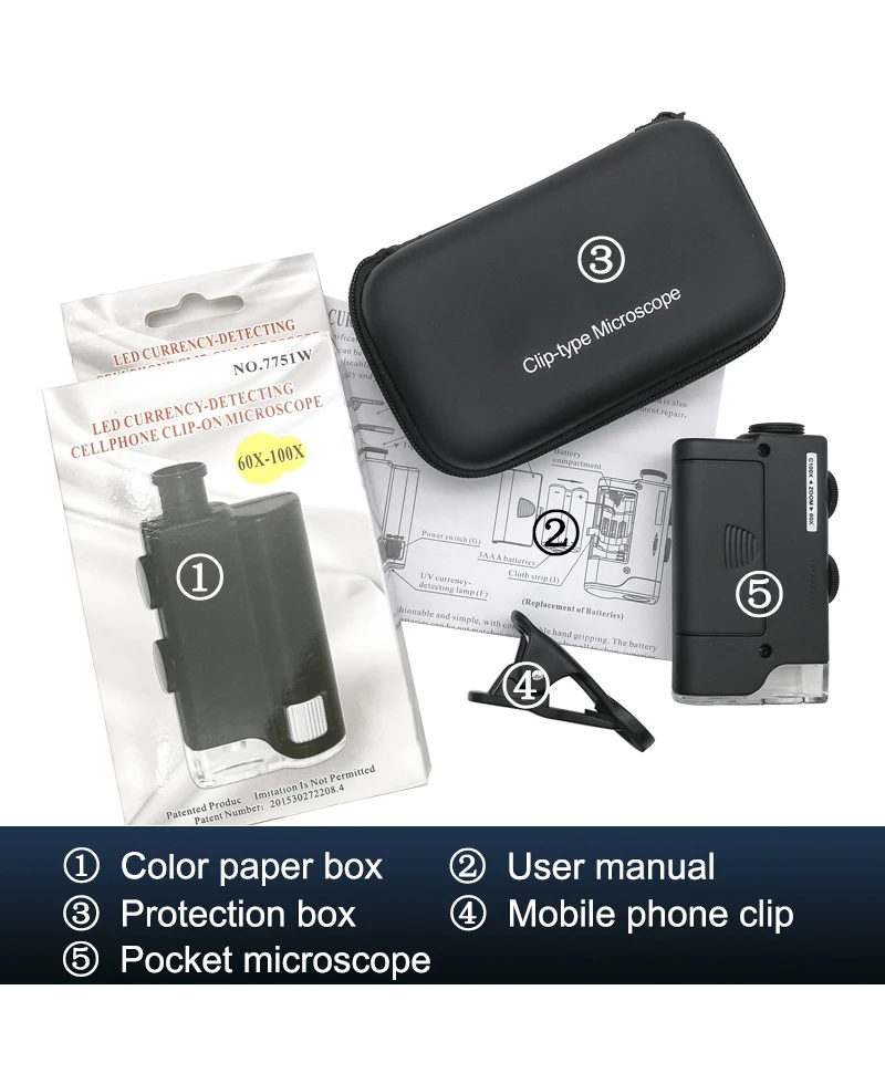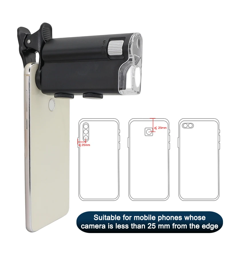 60X/100X мобильный телефон микроскоп с зажимом для мобильного телефона карманное увеличительное стекло с каркольной сумкой для iPhone, Samsung смартфона