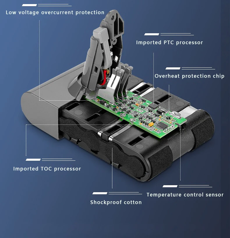 Для Dyson пылесос батарея V6 V7 V8 V10 V11Series SV07 SV09 SV10 SV12 DC62 абсолютный пушистый животный Pro Аккумуляторная батарея О батарее для Dyson правила безопасности инструмента батареи 1. Не заряжайте аккумулятор в влажном или влажном месте. 2. Использование стандартного режима в повседневном использовании, максимальный режим сократит время использования. 3. Пожалуйста, полностью зарядите новый аккумулятор перед использованием. После 2-3 раз регулярного использования (зарядка/разрядка) аккумулятор может быть полностью заряжен Активирован и обеспечивает оптимальную производительность. 4. Не раздавливайте, не уроните или не повредите аккумулятор. Не используйте аккумулятор или зарядное устройство, которое было отброшено или получено Резкий удар. Посылка включает в себя Как вы выбираете