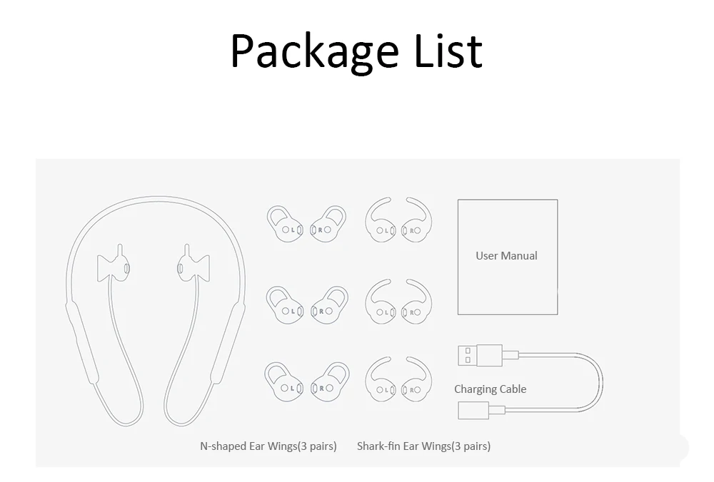 Материал корпуса наушников: PC или PC + ABS, алюминий, покрытие для ушей: силикагель, чехол для аккумулятора/блок управления: PC или PC + ABS провод для шеи: никель-титановый сплав металл памяти, силикагель кабель: плетеный провод