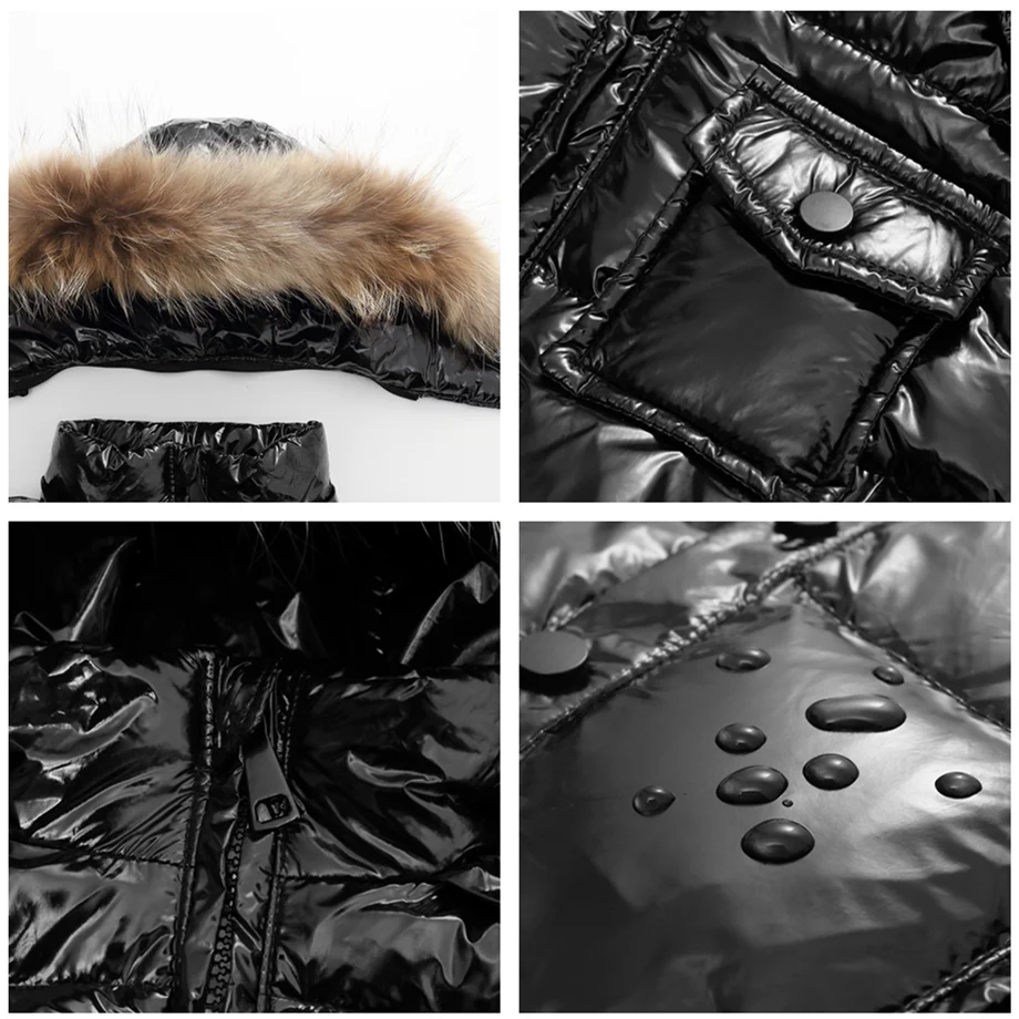 1, классический дизайн + наполнитель из белого утиного пуха, водонепроницаемый + большой натуральный мех = модные пальто