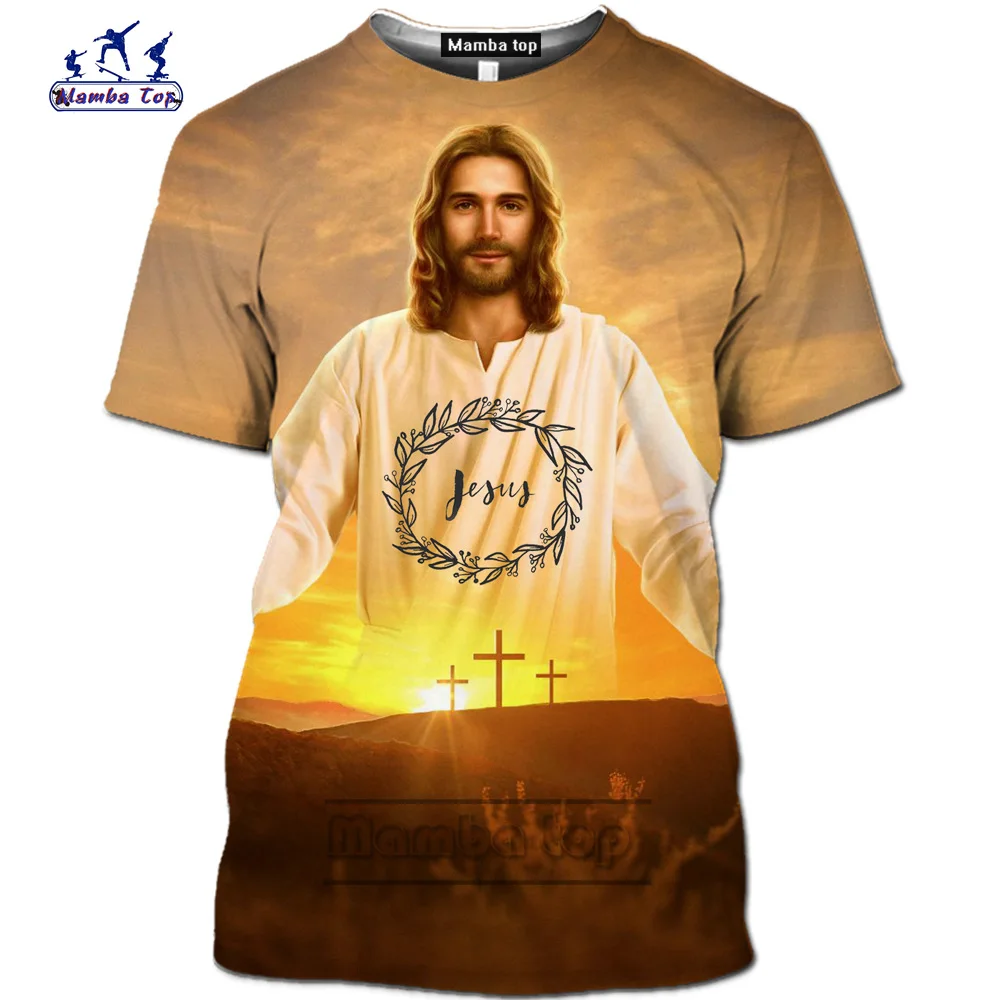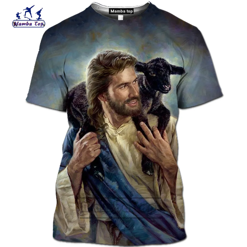 Мужская рубашка с 3D-принтом «Иисус Христос» Mamba, модная Повседневная летняя рубашка с коротким рукавом в стиле аниме Harajuku Homme, уличная одежда