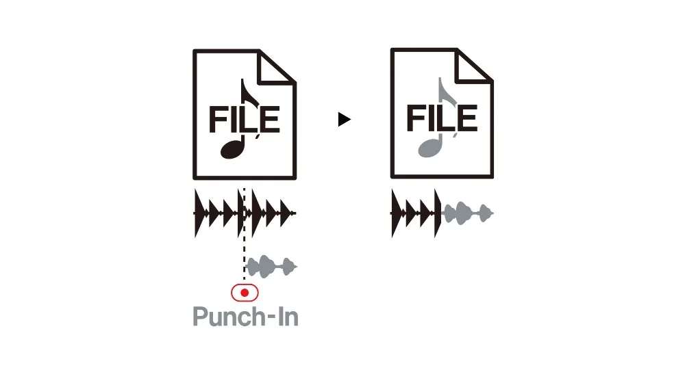 Неразрушающий контрольФункция overdubbing позволяет записывать Overdub во время воспроизведения ранее записанного файла. Это позволяет записывать другие части, такие как гитарный сольный над записью ранее сделанных, например, на репетиции студии. Overdubbing создает новый файл, оставляя исходный файл неповрежденным, что упрощает повторную запись.