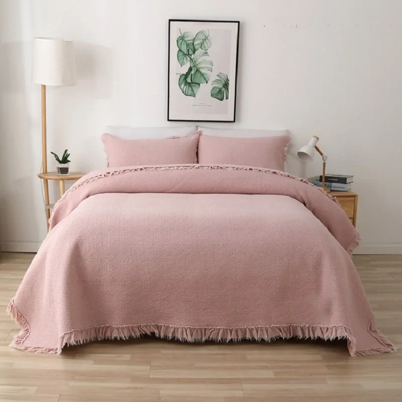 Корейские покрывала с кружевной каймой для кровати с тиснением, набор из 3 предметов, хлопковое стеганое покрывало, однотонное стеганое покрывало для кровати, покрывало размера королевы, летнее одеяло на кровати